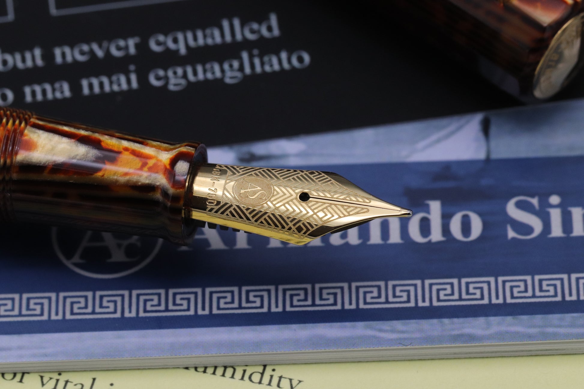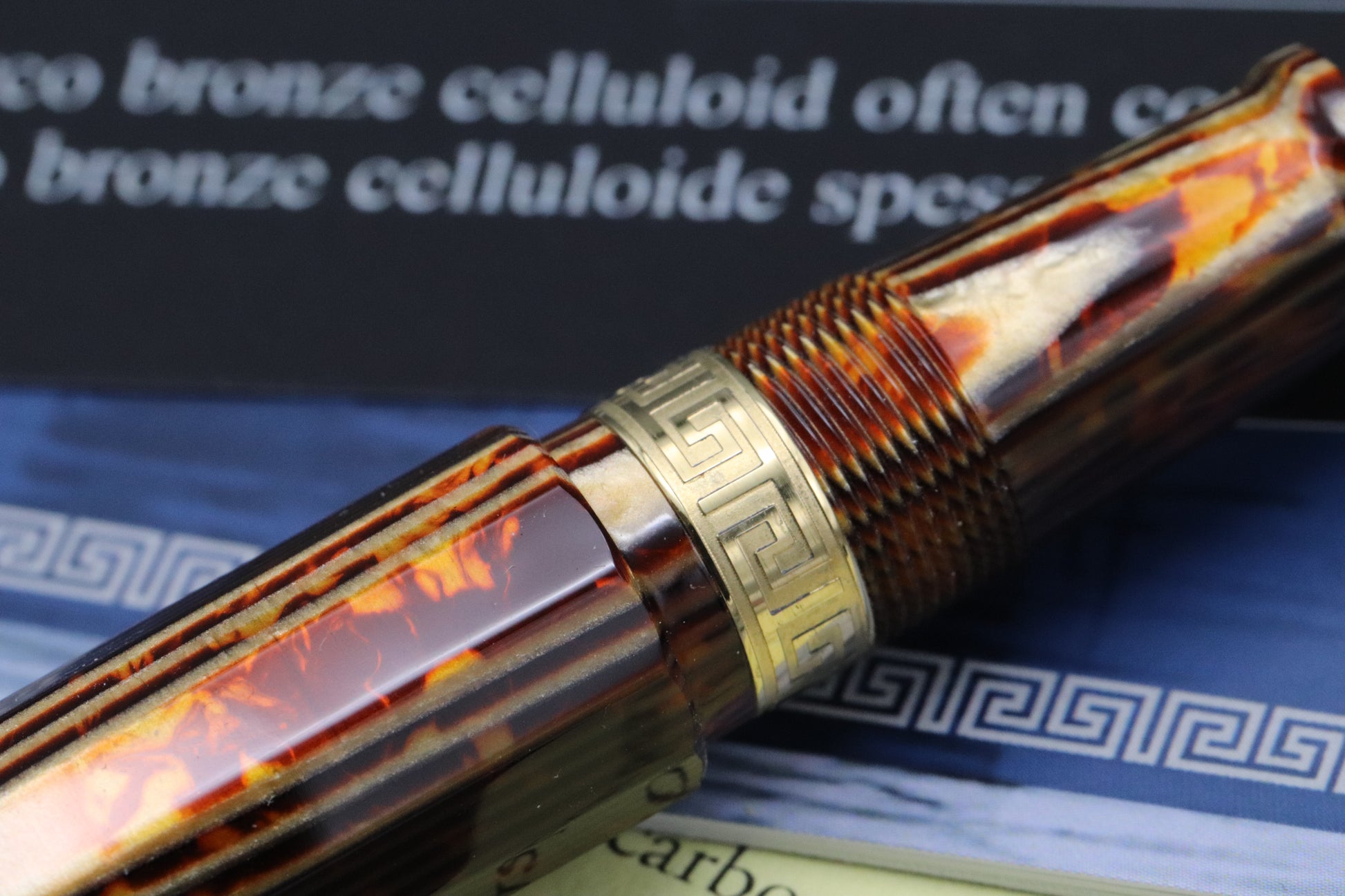 The Gladiatore Medio is crafted from Arco Bronze celluloid, with the pattern lining up brilliantly between the cap, barrel and cone. The trim is gold-plated.