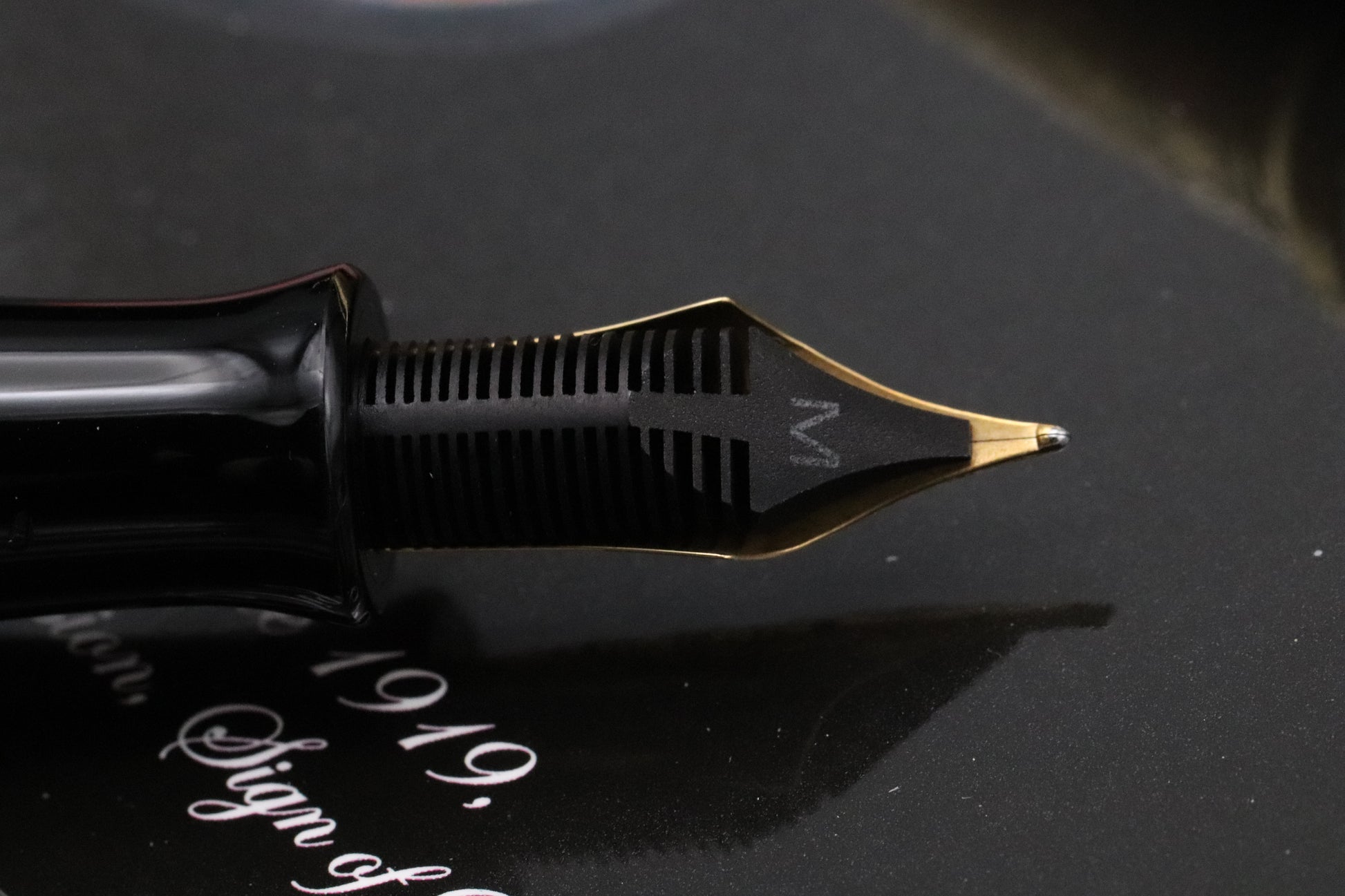 The pen is fitted with an 18k medium nib and it's a piston filler, so bottled ink is your choice here.
