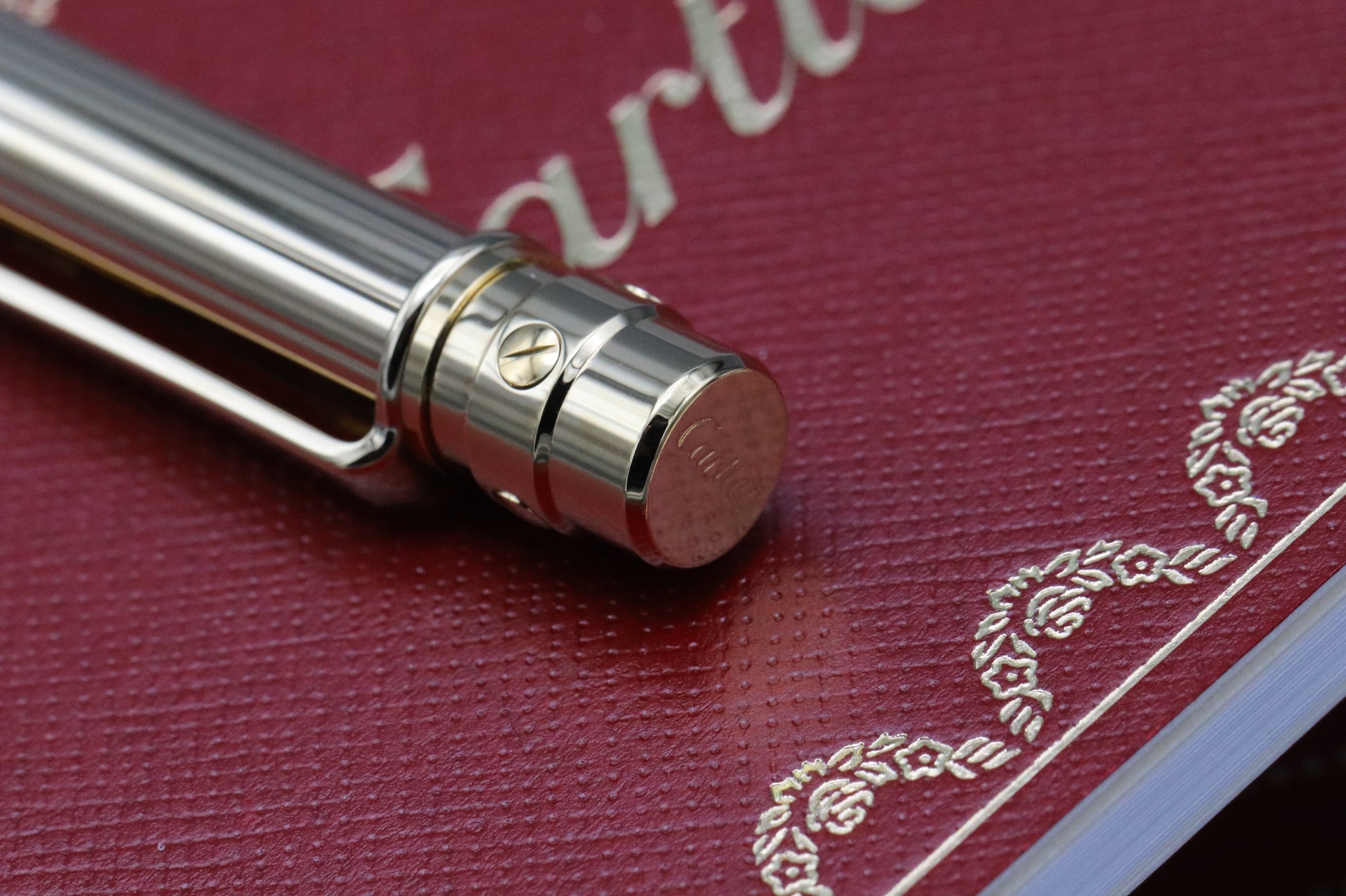 Cartier pens are renowned for their quality of finish and this one is no different. The pen is gold-coated and features a vertical godron design.