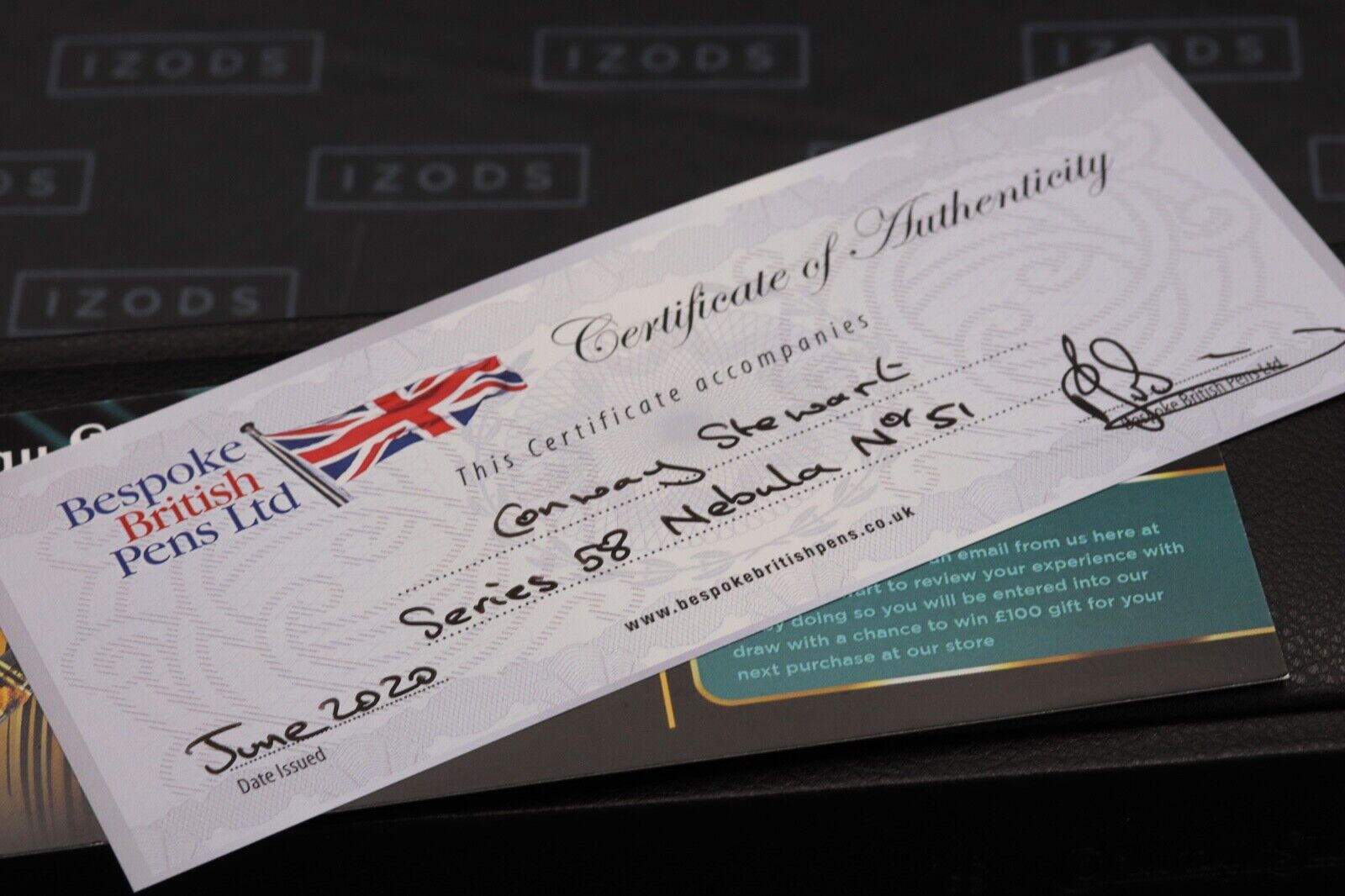 With every pen that we sell we provide a card that includes the manufacturer, model, serial / limitation number and date it was purchased from us. We do this because our customers like to have documentation showing that it’s been purchased from a trusted seller. As the Financial Times said recently in their How To Spend It publication - "izods is an e-cache of ultra fine fountain pens".