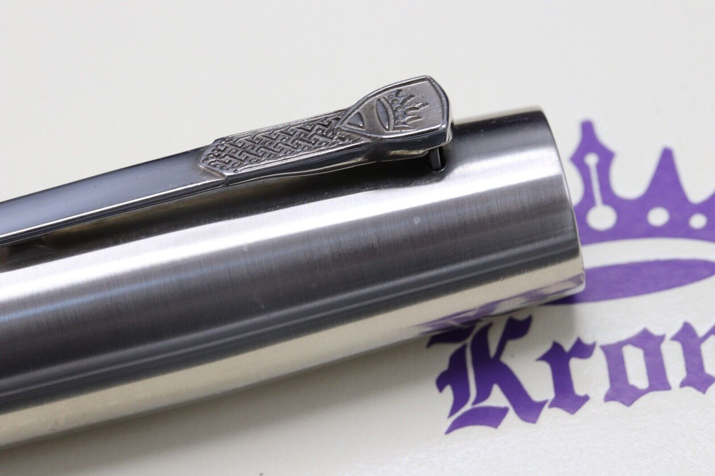 Only 388 pens were produced and this is number 19. Released in 2006, the Gradient series of pens feature mother-of-pearl barrels, which are then hand-painted. This coral red version is our favourite and the effect has to be seen to be fully appreciated. This is large pen and has a delightful weight when writing. The cap, trim and blind cap are crafted from stainless steel.