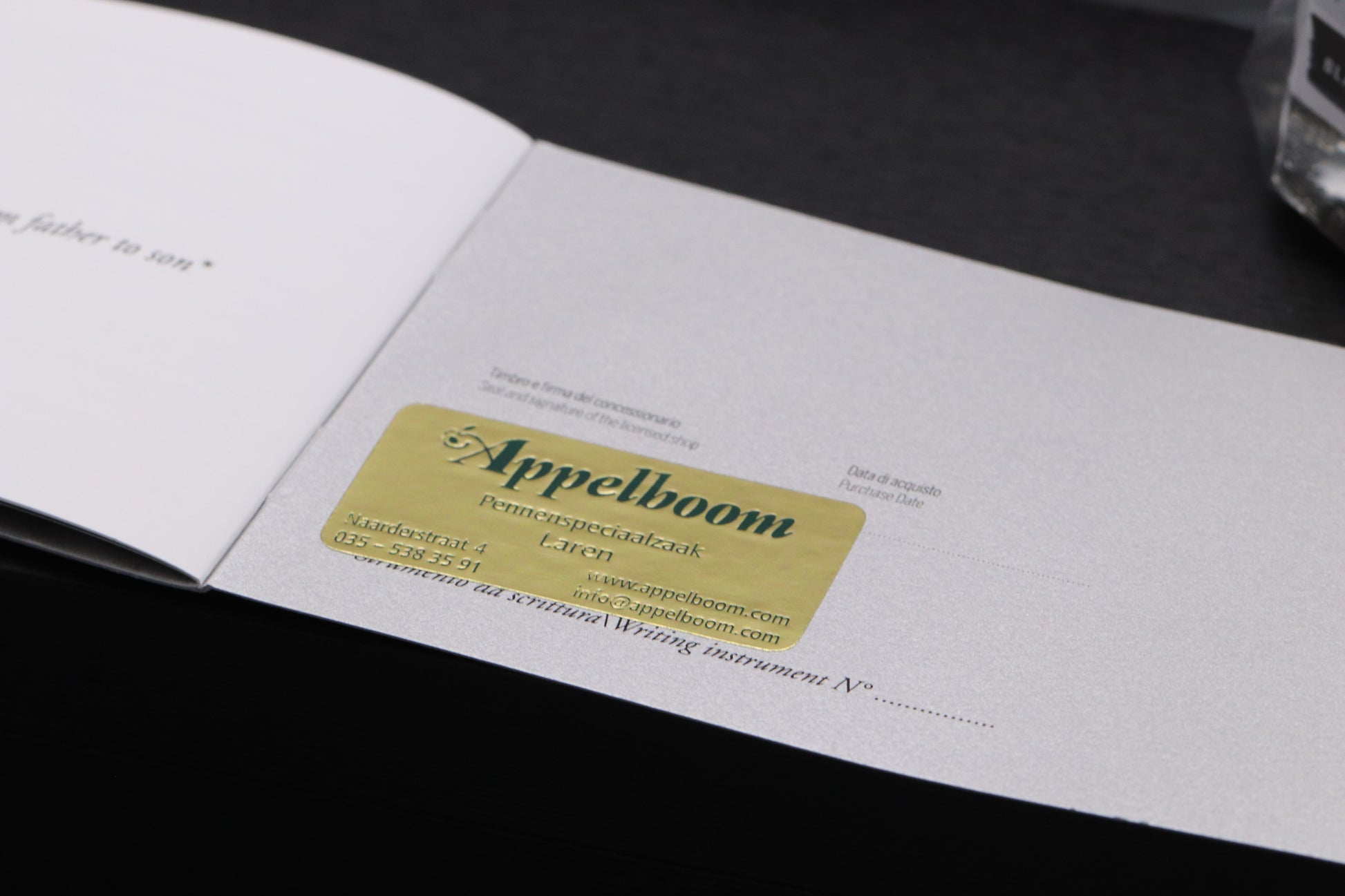 With every pen that we sell we provide a card that includes the manufacturer, model, serial / limitation number and date it was purchased from us. We do this because our customers like to have documentation showing that it’s been purchased from a trusted seller.