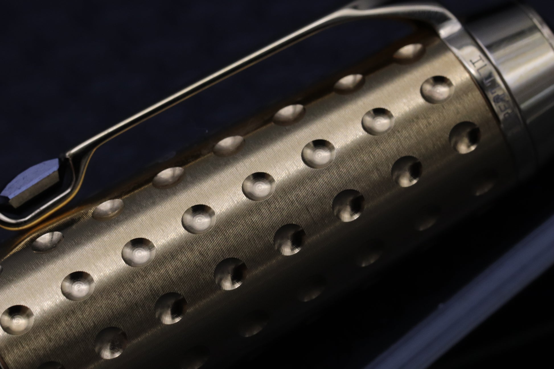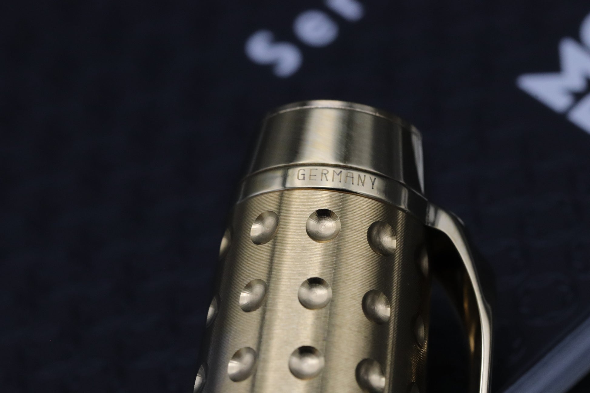 The Doue Gold-Plated or as we refer to it as 'The Dimple Model', was released in 2001 and features a dimpled design on both the cap and barrel. The barrel is crafted from black resin, which has a satin finish with the cap being gold-plated. The clip features a synthetic, paramount cut, onyx.