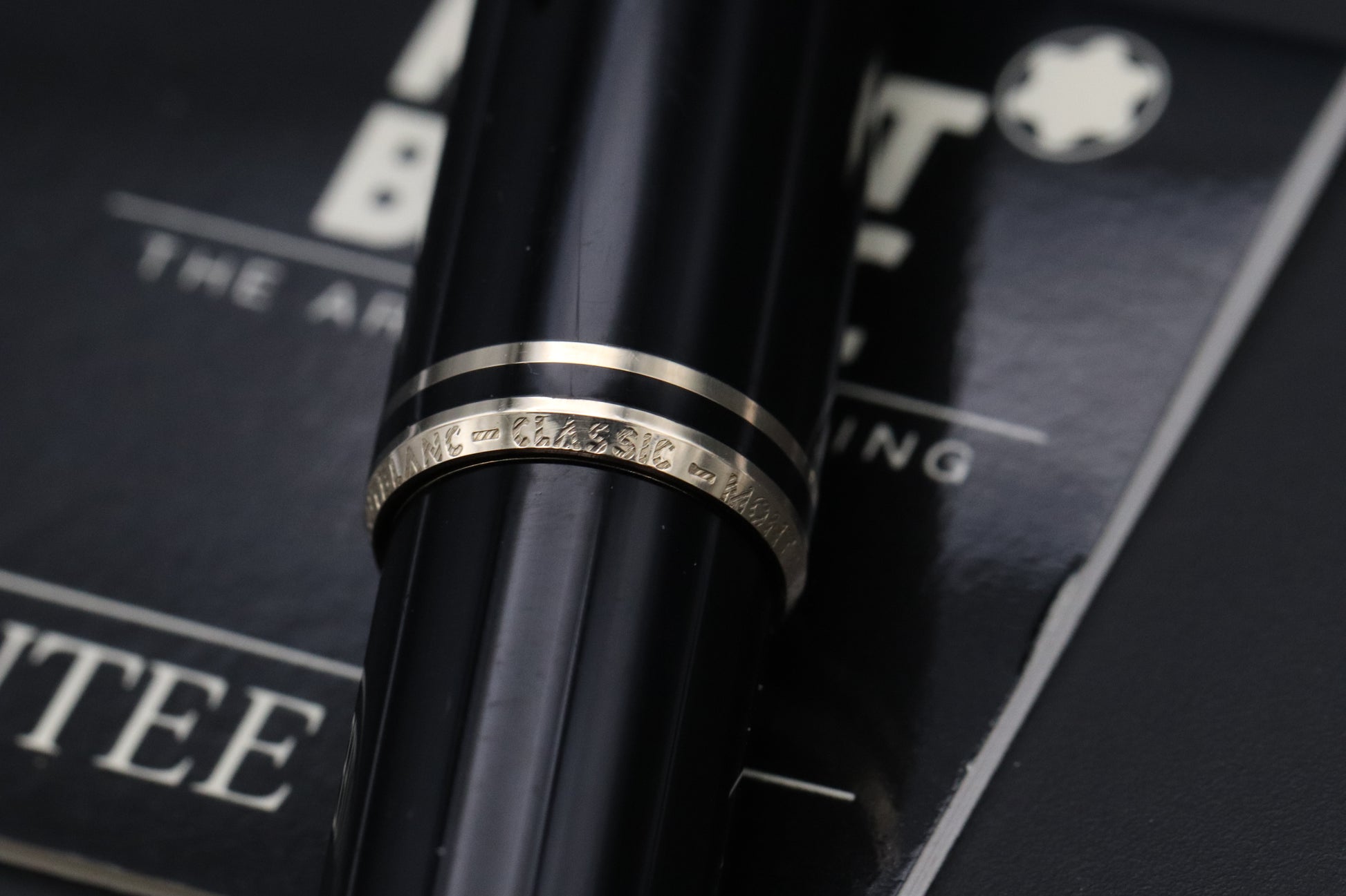 Thanks very much for looking at our listing for this Montblanc Classic Black Fountain Pen, which comes with its Montblanc presentation box and information leaflet. The pen has been carefully used over the decades and is presented in overall lovely condition.