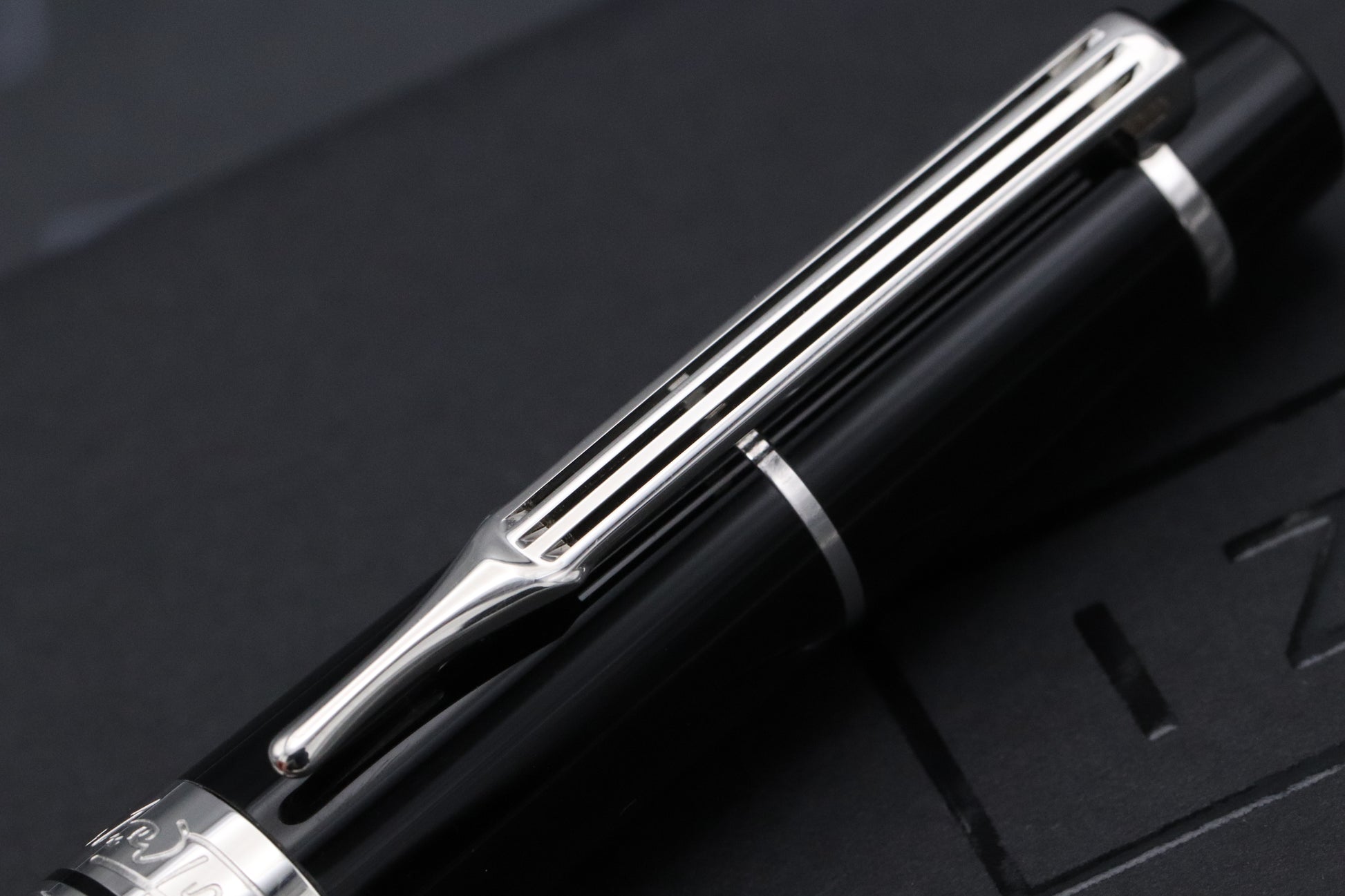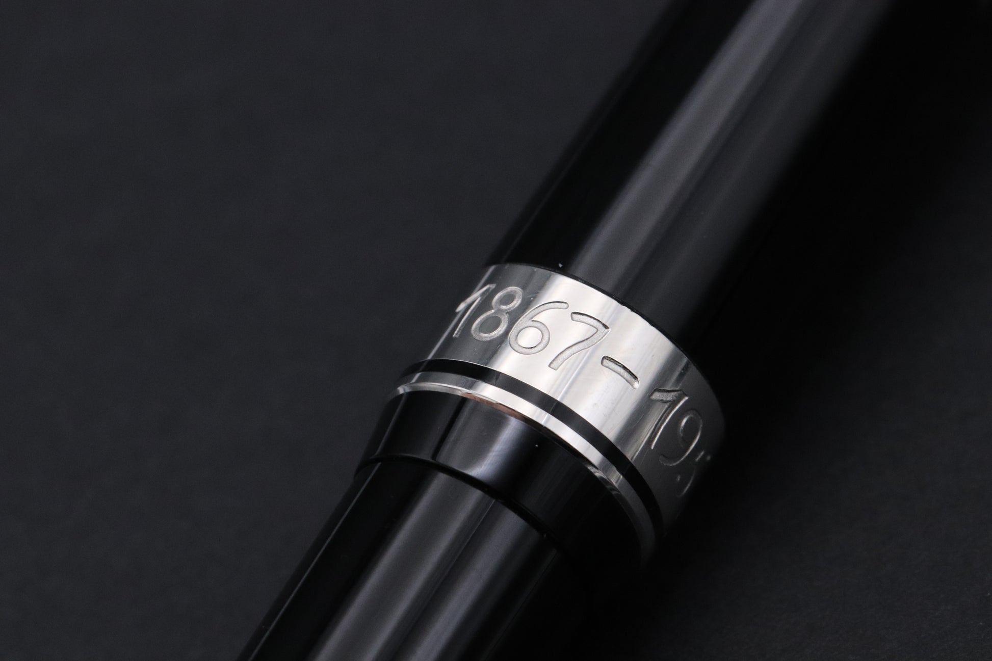 The clip is shaped like the strings and string holder of a cello and his signature can be found engraved on the cap band. The dates 1867 – 1957, signifying his year of birth and death are also engraved on the cap band.