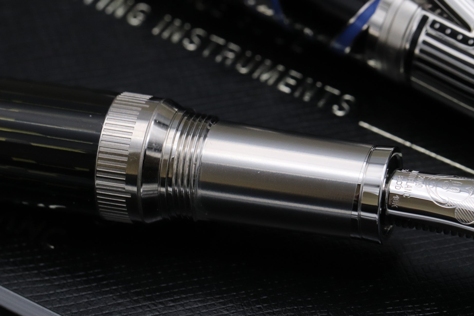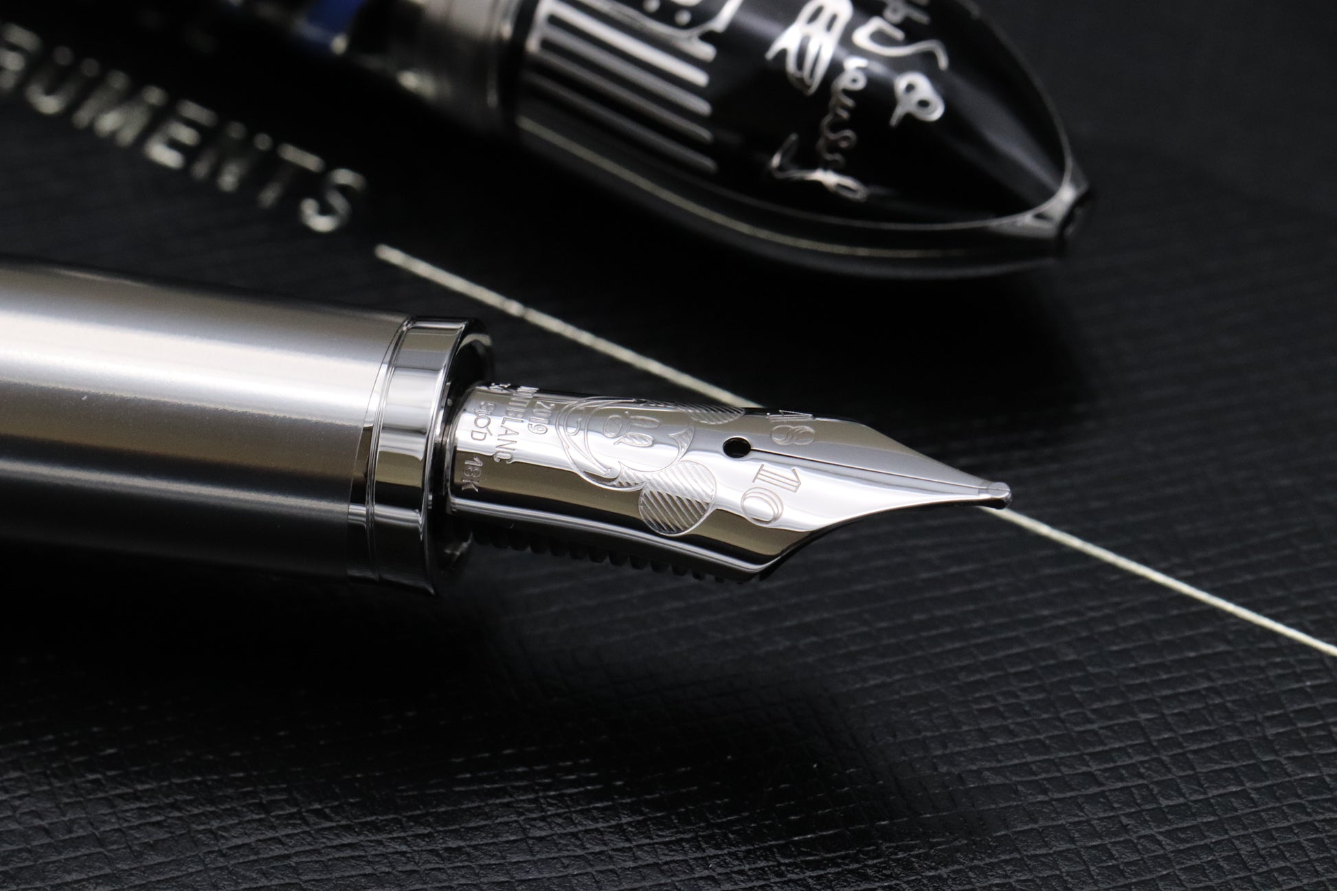 The overall shape of the pen is inspired by the Monorail system, with the cap featuring lacquered multiplane camera. The engraving on the cone commemorates Snow White, with the technical specifications and date and time of the premiere. The barrel has a sanimation technique whereby you can turn it and the image changes.