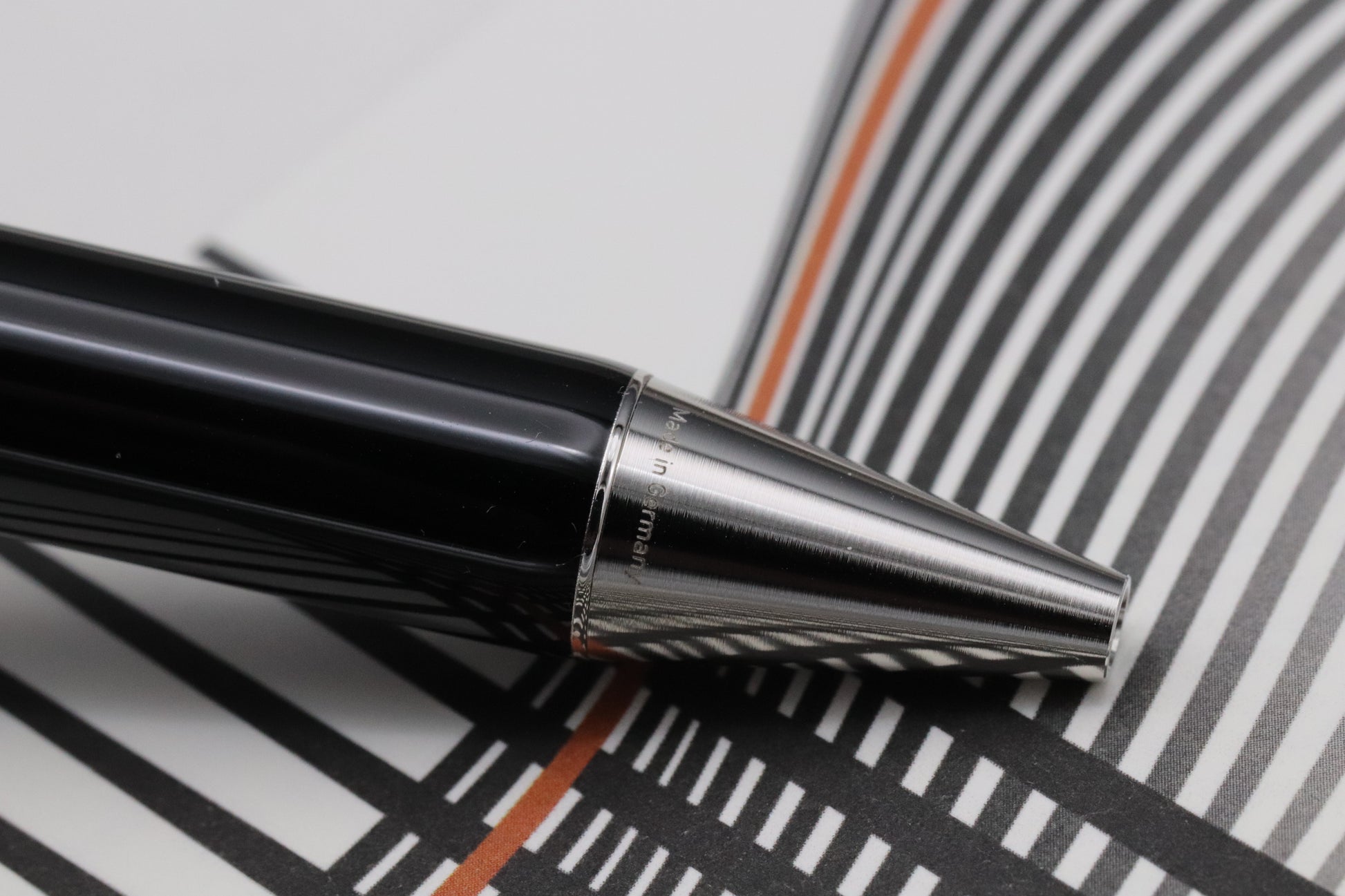 The Rouge et Noir names dates back to 1906 and the original 'Baby' pens of the 1920s are the inspiration for this new model. The pen is crafted from black lacquer with the section and trim being platinum-plated. Coral-hued resin surround the snowcap.