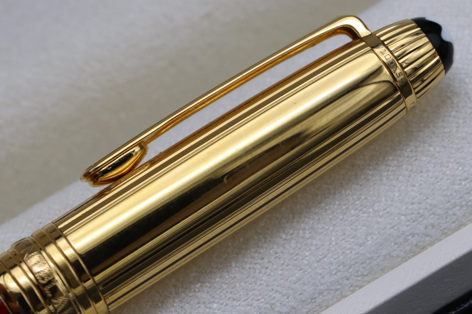 The Coral Red Mozart was only available for a short period fo time and are now extremely sought-after. The barrel is crafted from a glorious coral hued, marbled lacquer, which is so vivid in colour. The cap and trim are gold-plated, which works really well with the red.