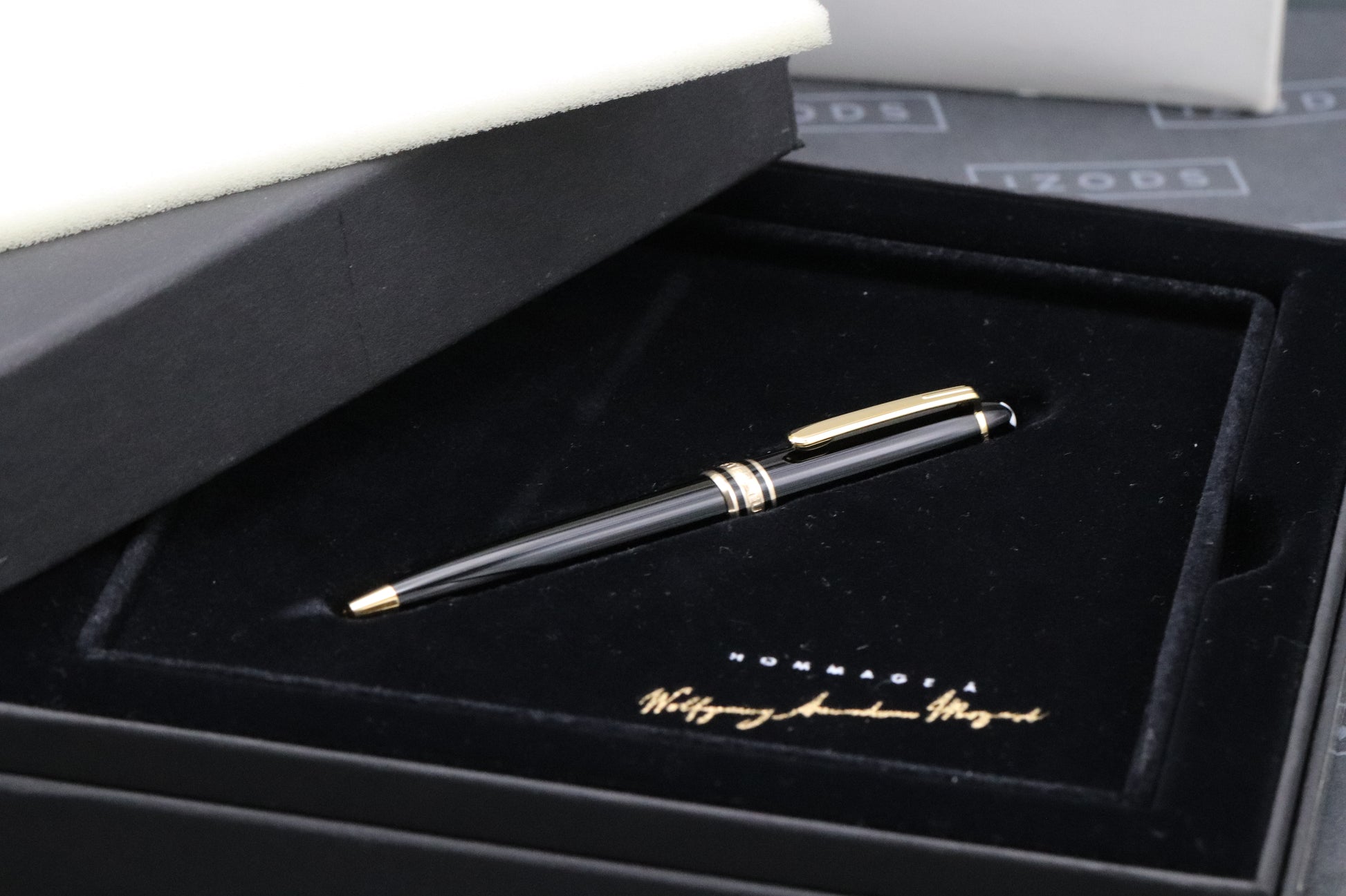Thanks very much for looking at our listing for this Montblanc Meisterstück 116 Mozart Gold Coated Ballpoint Pen, which comes with its large Montblanc presentation box (including outer), CD and unstamped service guide. The pen has never been used and is presented in virtually as new condition.