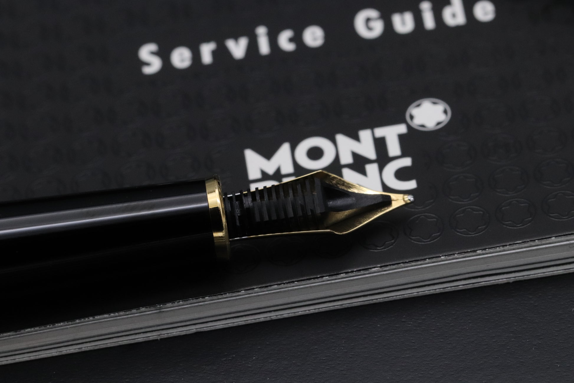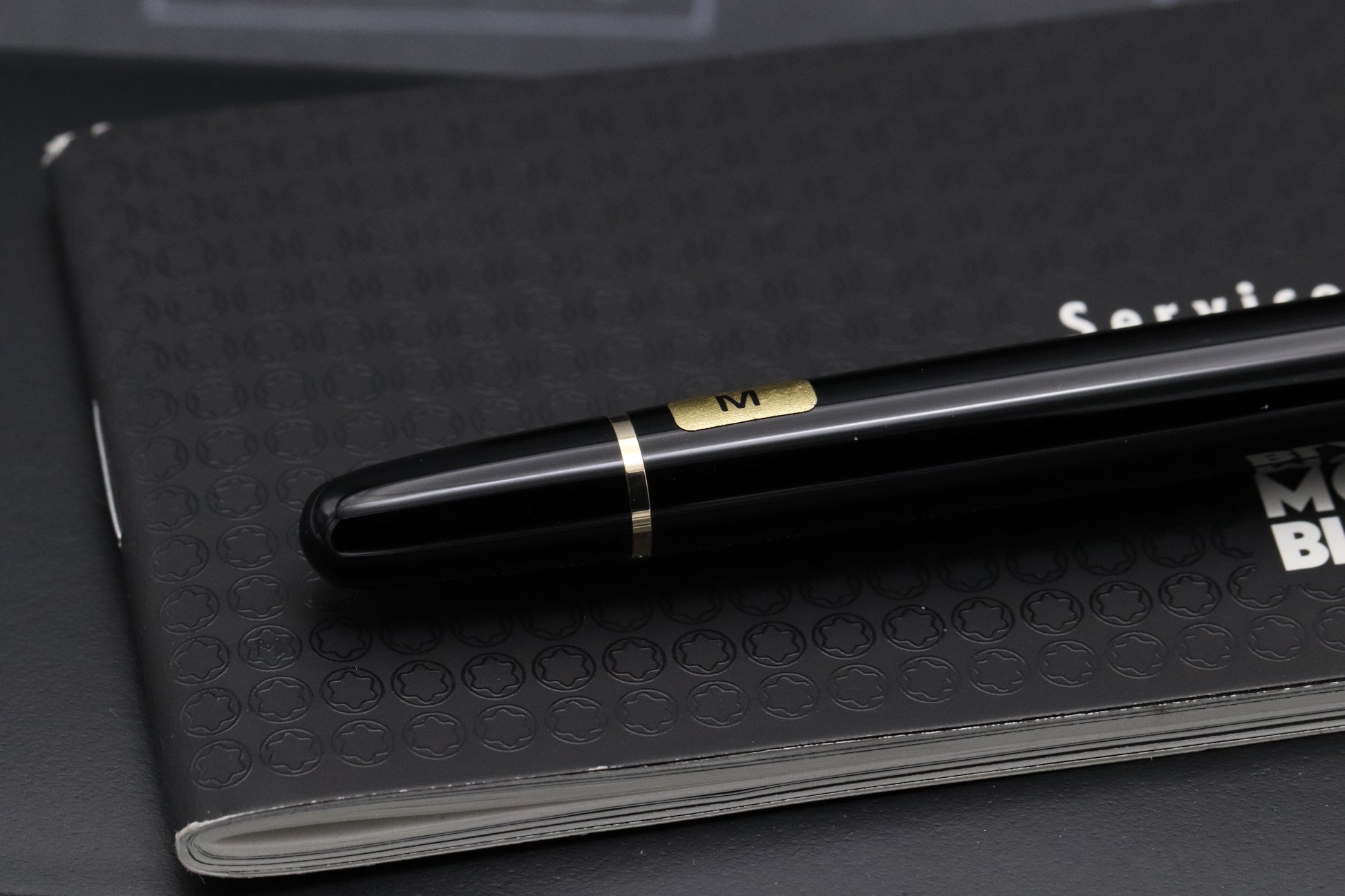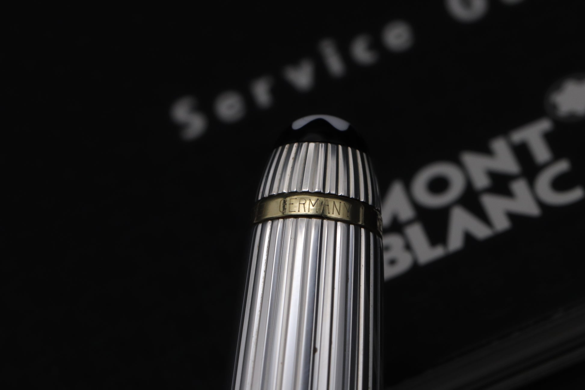 Thanks very much for looking at our listing for this Montblanc Meisterstück 144 Classique AG925 Pinstripe Doue Fountain Pen, which comes with its Montblanc presentation box. The pen has never been inked and is presented in overall fantastic condition - the M sticker, denoting a medium nib, remains on the barrel.