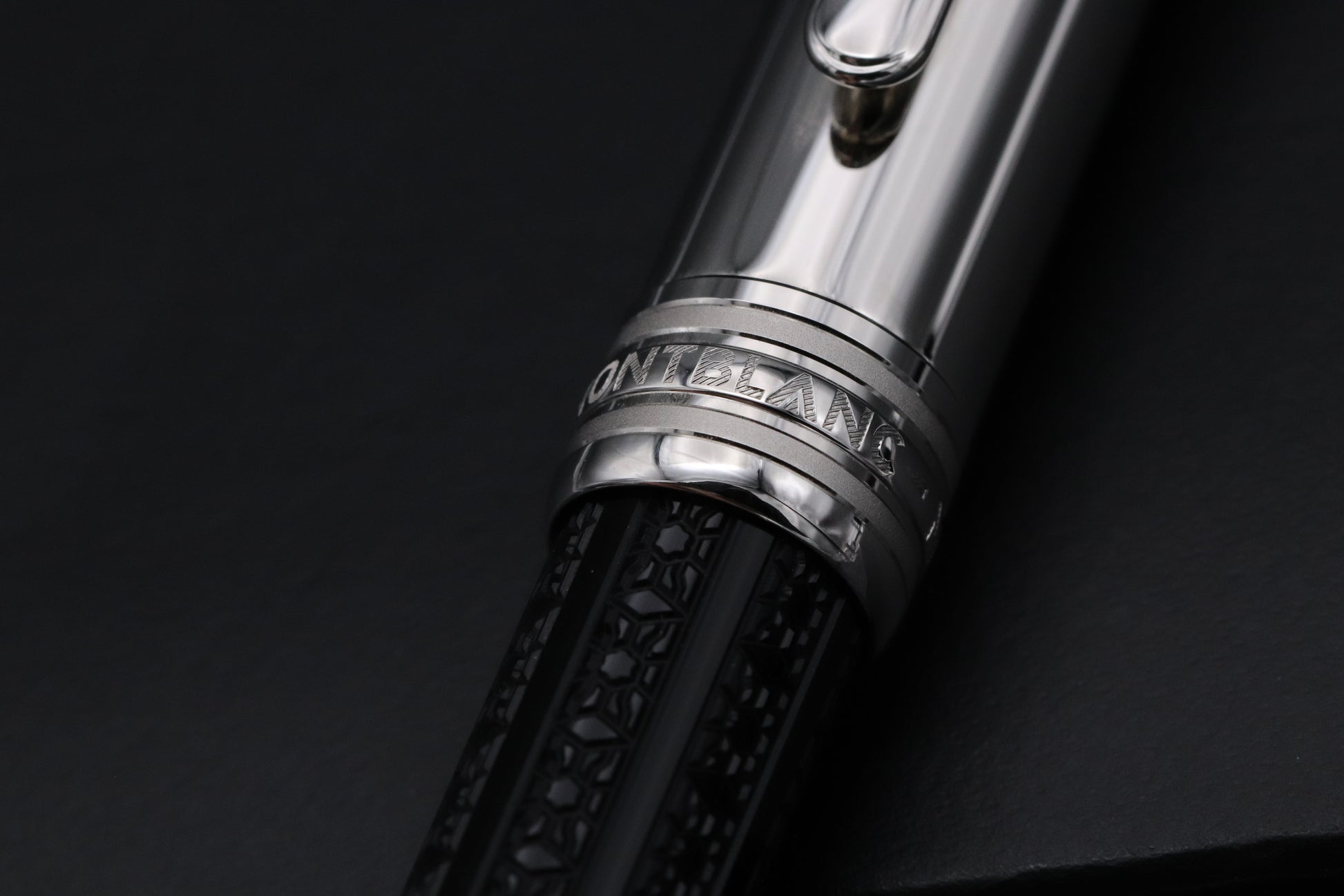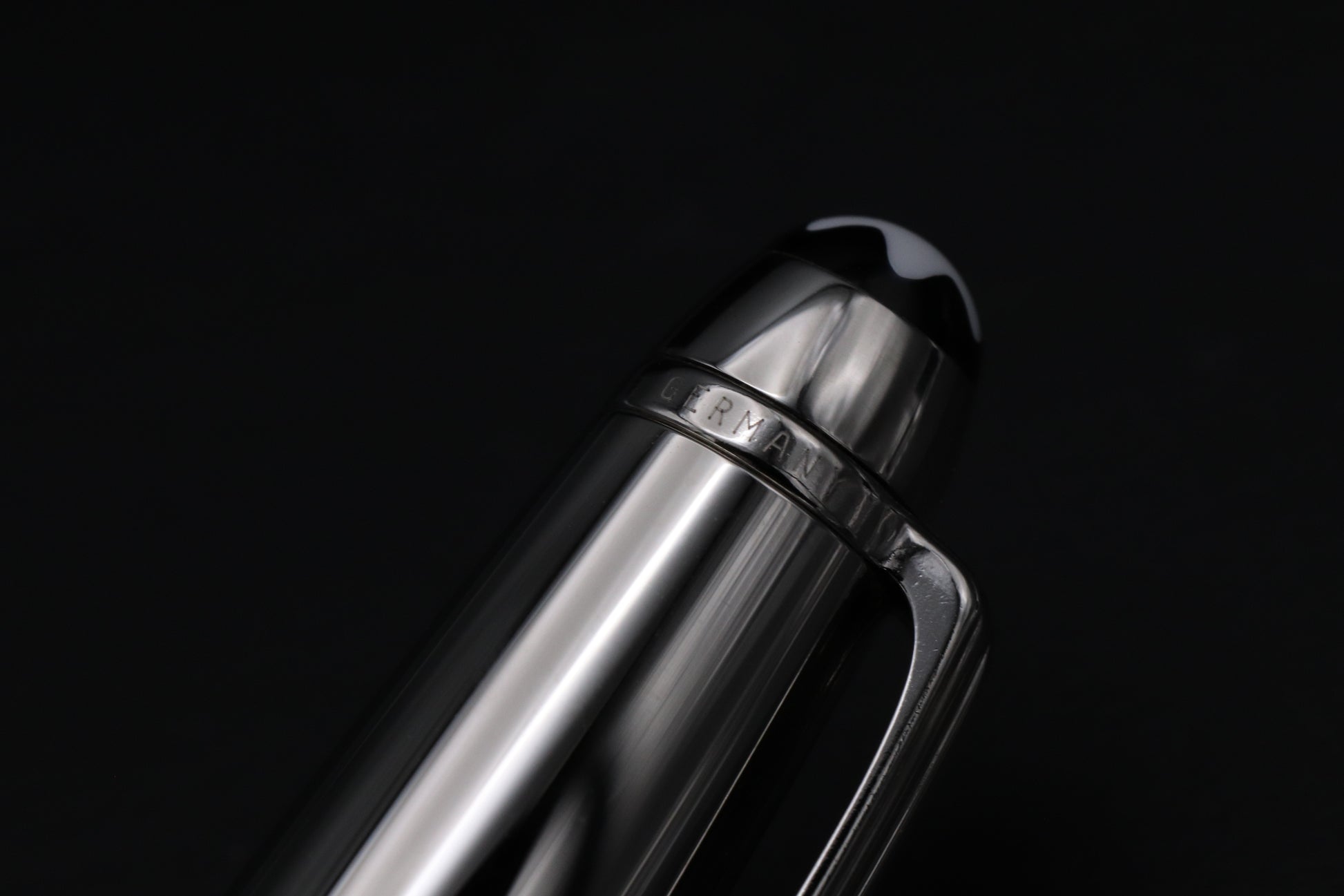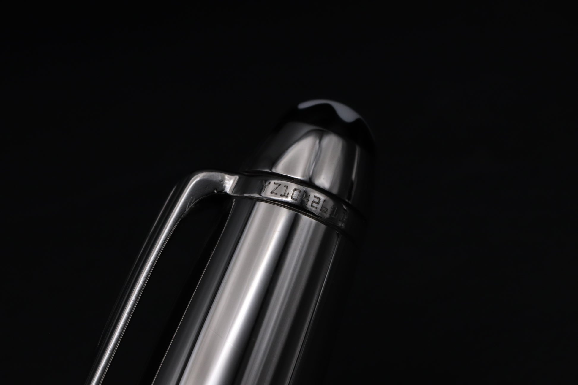 The Doue Signum features a stainless steel cap, with the barrel being black resin, which is engraved with the Montblanc snowcap emblem.