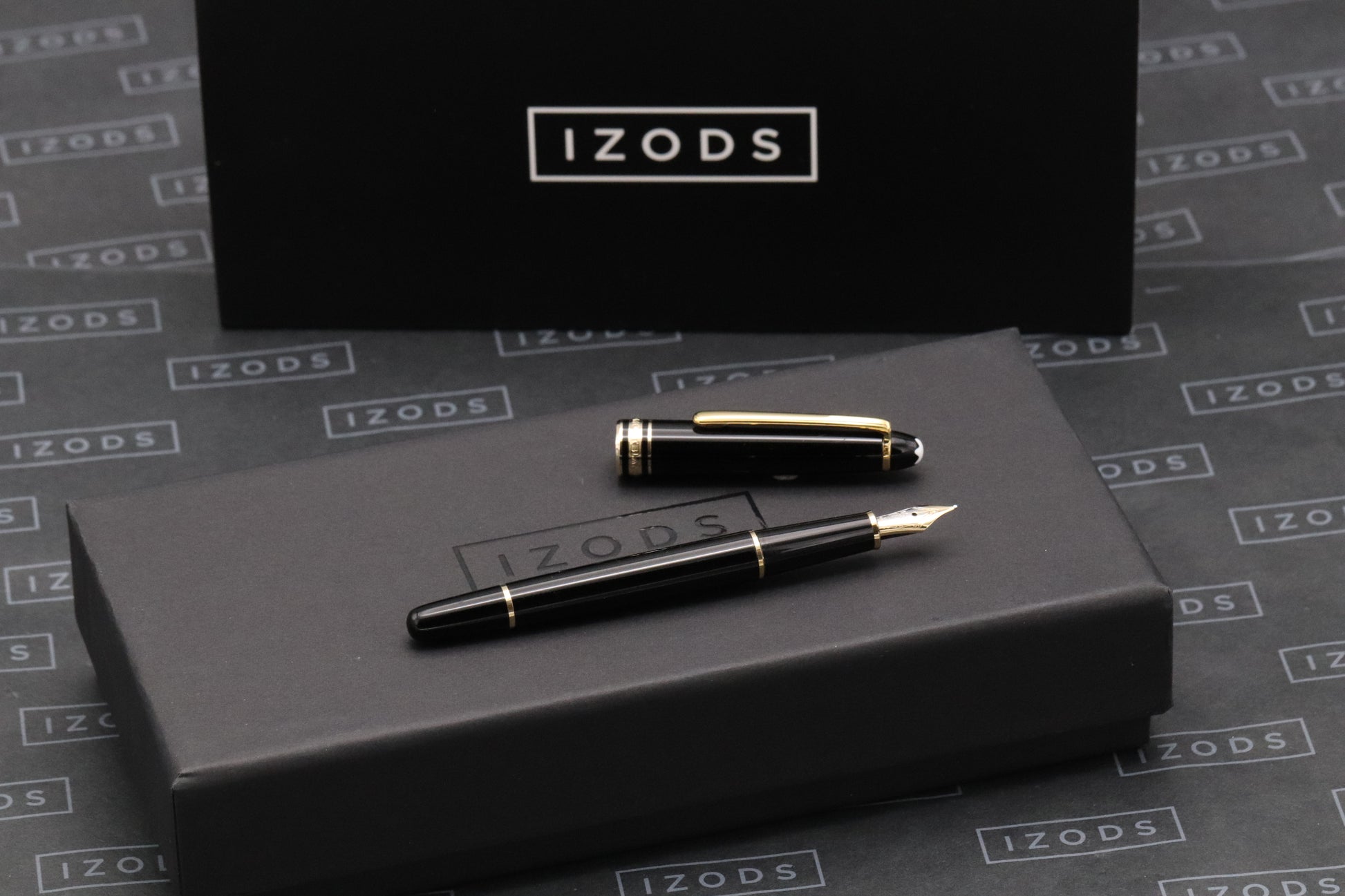 Thanks very much for looking at our listing for this Montblanc Meisterstuck 144 Classique Gold Coated Fountain Pen, which comes with an IZODS presentation box. The pen has been carefully used and is presented in overall lovely condition - there is a little bit of rhodium-plating on the nib, but this is barely visible under normal conditions.