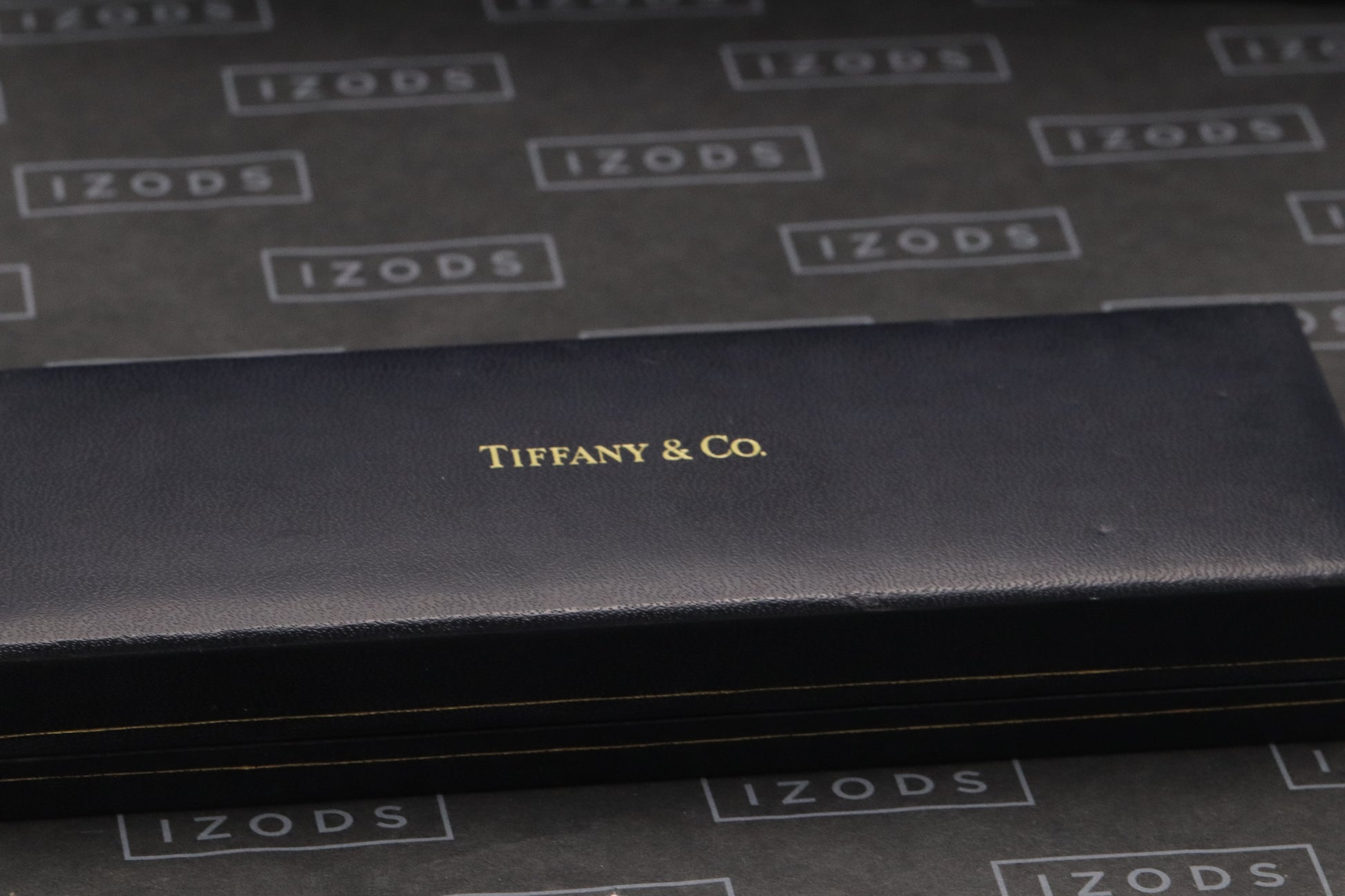The pen is crafted from black resin and the trim is gold-coated. The clip is engraved with 'Tiffany & Co' branding. This is a simple pen to date as it features the first generation serial number (shorter and in a different font), along with W.Germany clip ring marking. It places it between 1991-92, but most likely 1991.