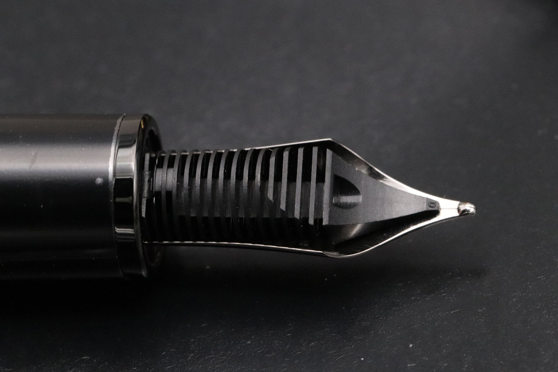 The pen is fitted with an 18k ruthenium-coated medium nib and it's a piston filler, so your choice here is bottled ink.