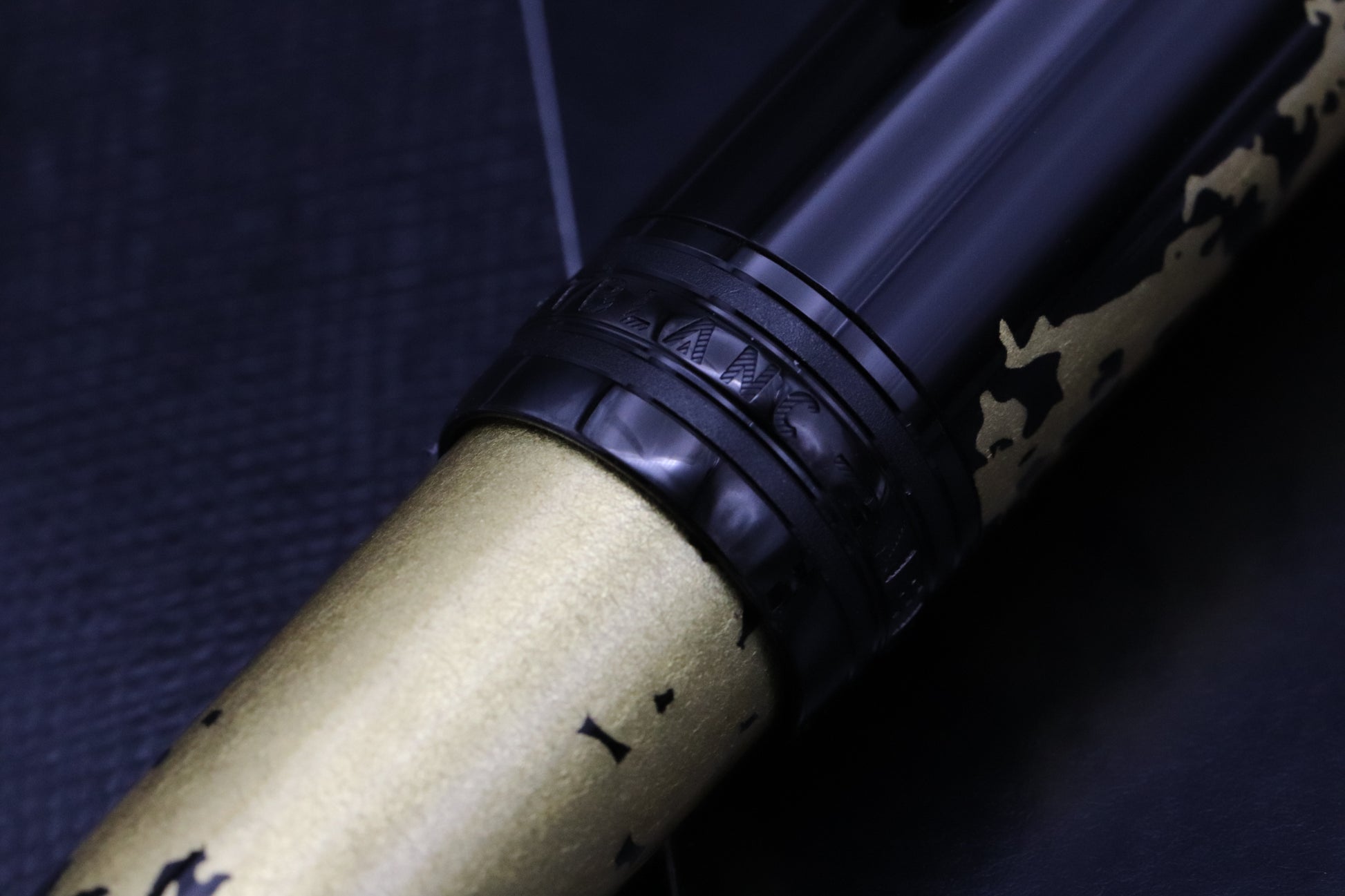 The Gold Leaf is a stunning release from Montblanc and the design was chosen to represent a contemporary take on the traditional black and gold colourscheme. The barrel and cap are coated in black translucent lacquer, which is then finished in gold leaf - this is applied by hand, with the result being that every pen being slightly different.