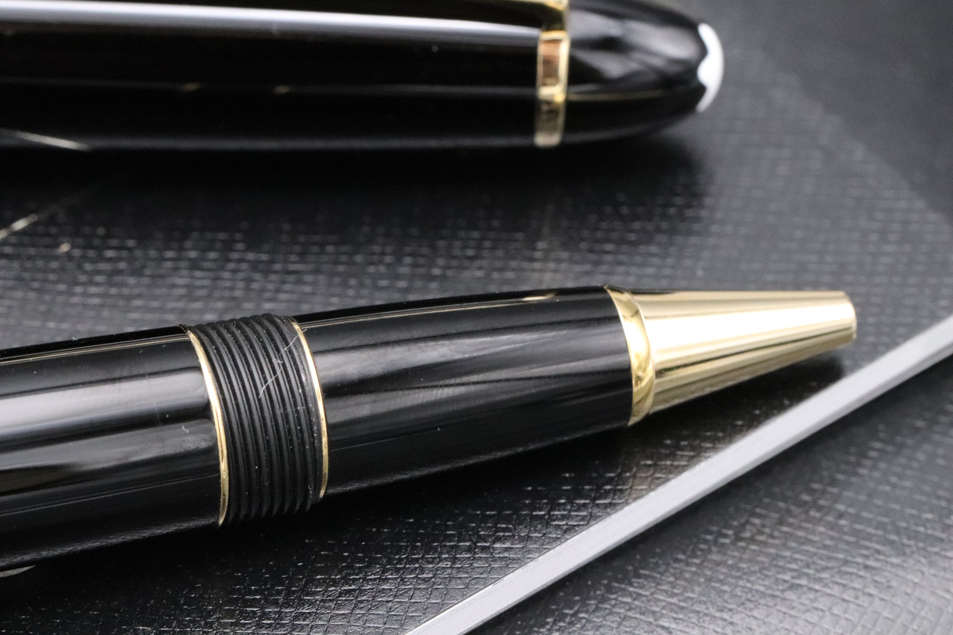 The pen is crafted from black resin with the trim being gold-coated.
