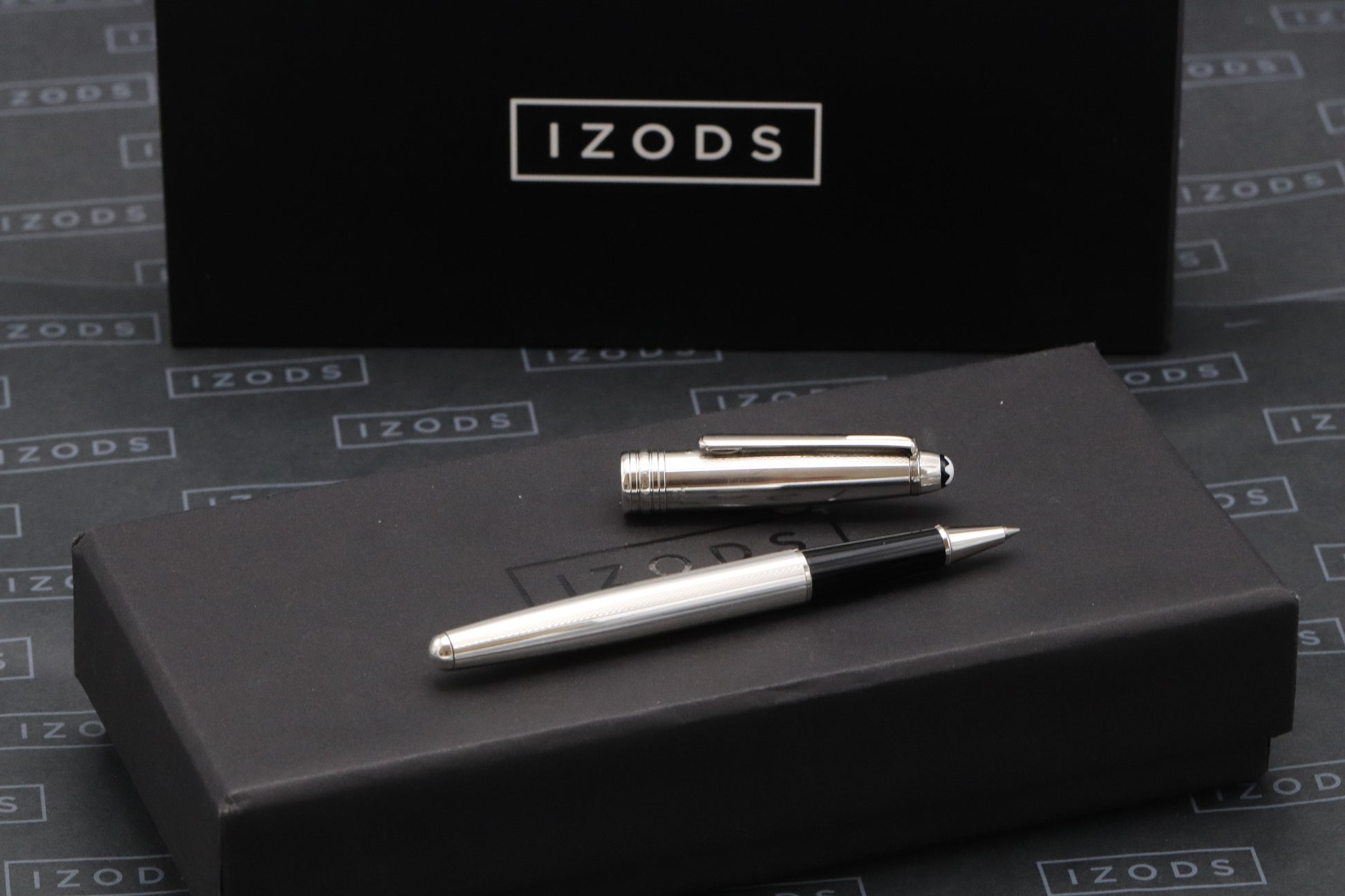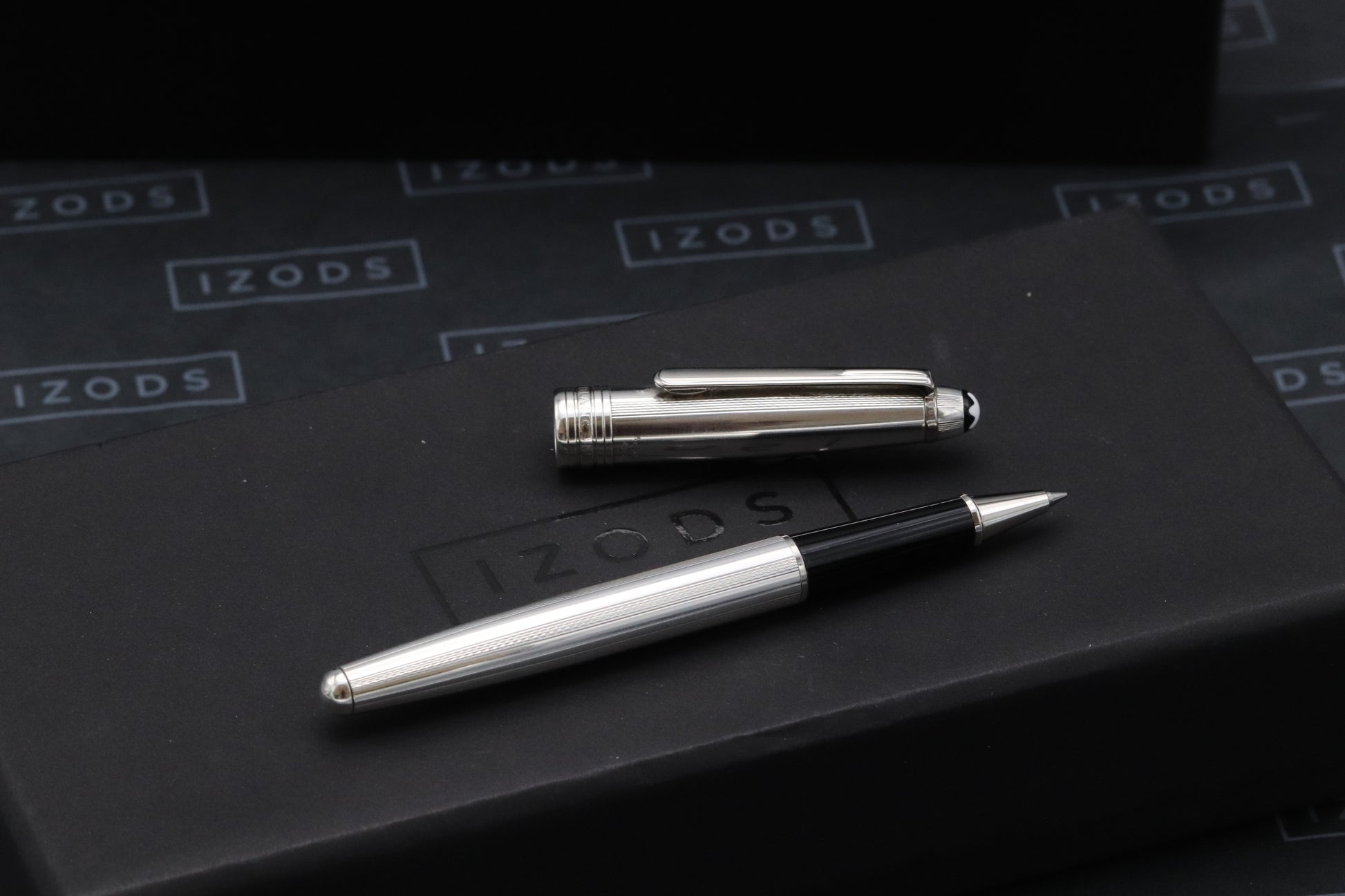 Thanks for looking at our listing for this Montblanc 163 Classique Solitaire Pure Silver Rollerball / Fineliner Pen, which comes with an IZODS presentation box. The pen has been lightly used and is presented in overall excellent condition.