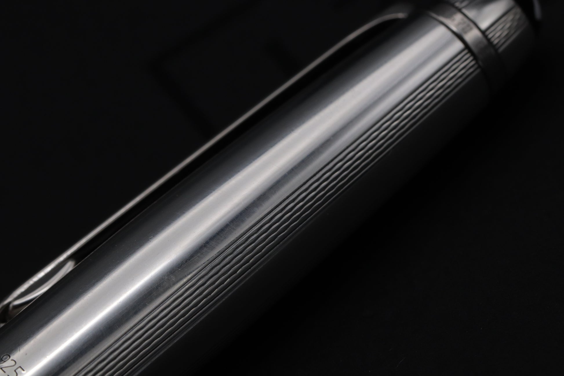The Pure Silver pens were produced for a limited period of time and are now getting increasingly difficult to track down. The barrel and cap are crafted from sterling silver, which then has an intricate engraved design. The trim is platinum-coated.