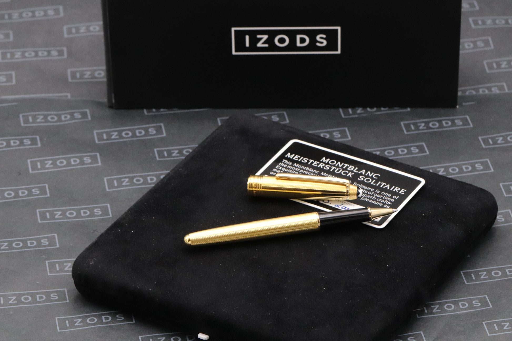Thanks very much for looking at our listing for this Montblanc Meisterstuck 163 Classique Gold-Plated Barley Rollerball Pen, which comes with its Montblanc Solitaire presentation box. The pen has been lightly used and is presented in overall excellent condition - there is a very slight indentation on the edge of the cap, it's only noticeable if you look directly down the cap and makes no difference to how it attaches to the pen.