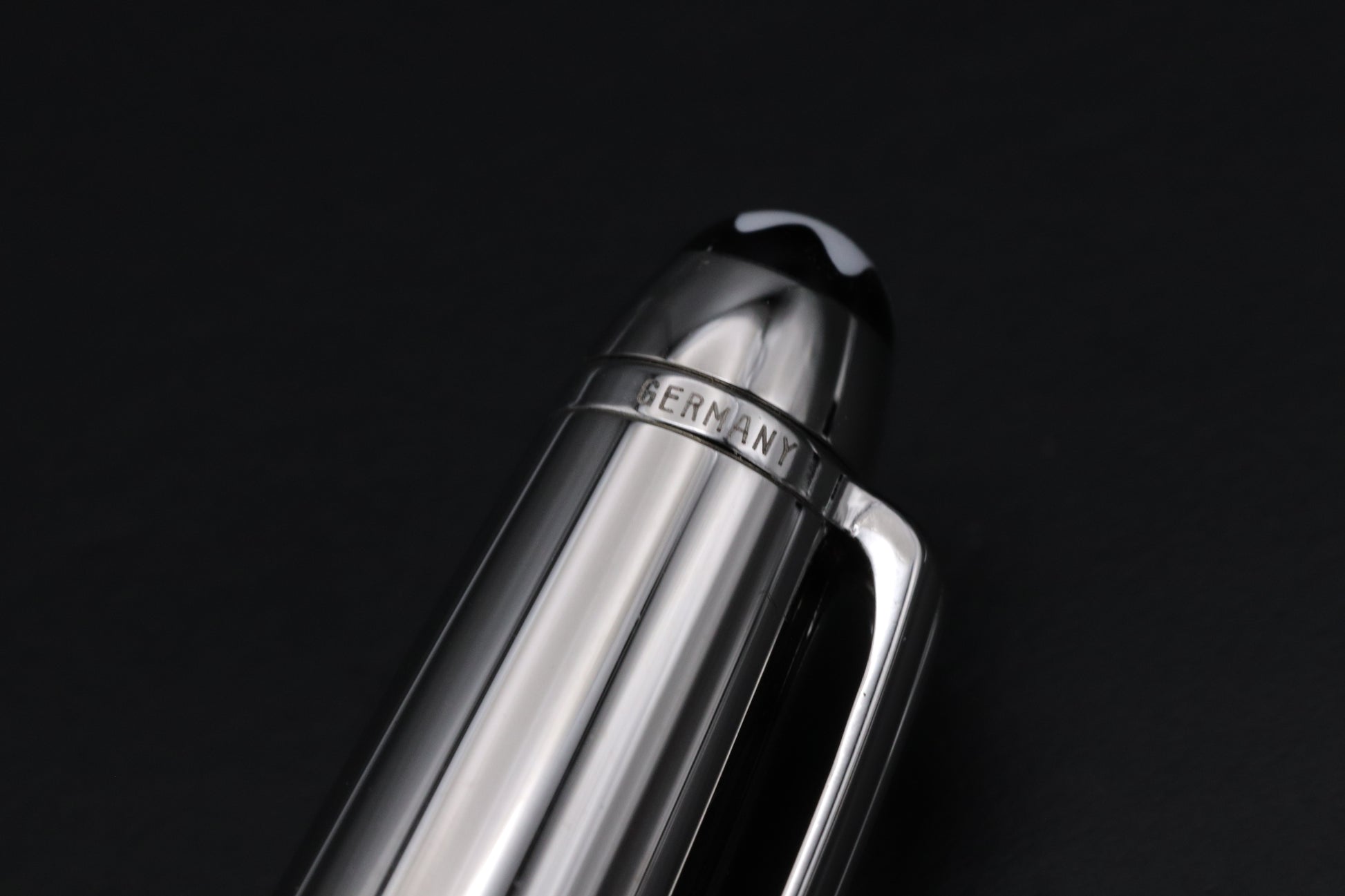 The Doue Signum features a stainless steel cap, with the barrel being black resin, which is engraved with the Montblanc snowcap emblem.