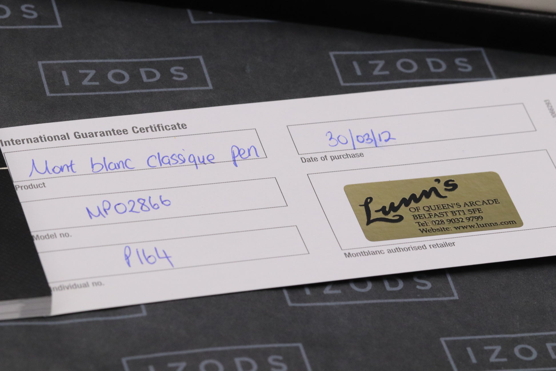 With every pen that we sell we provide a card that includes the manufacturer, model, serial / limitation number and date it was purchased from us. We do this because our customers like to have documentation showing that it’s been purchased from a trusted seller.