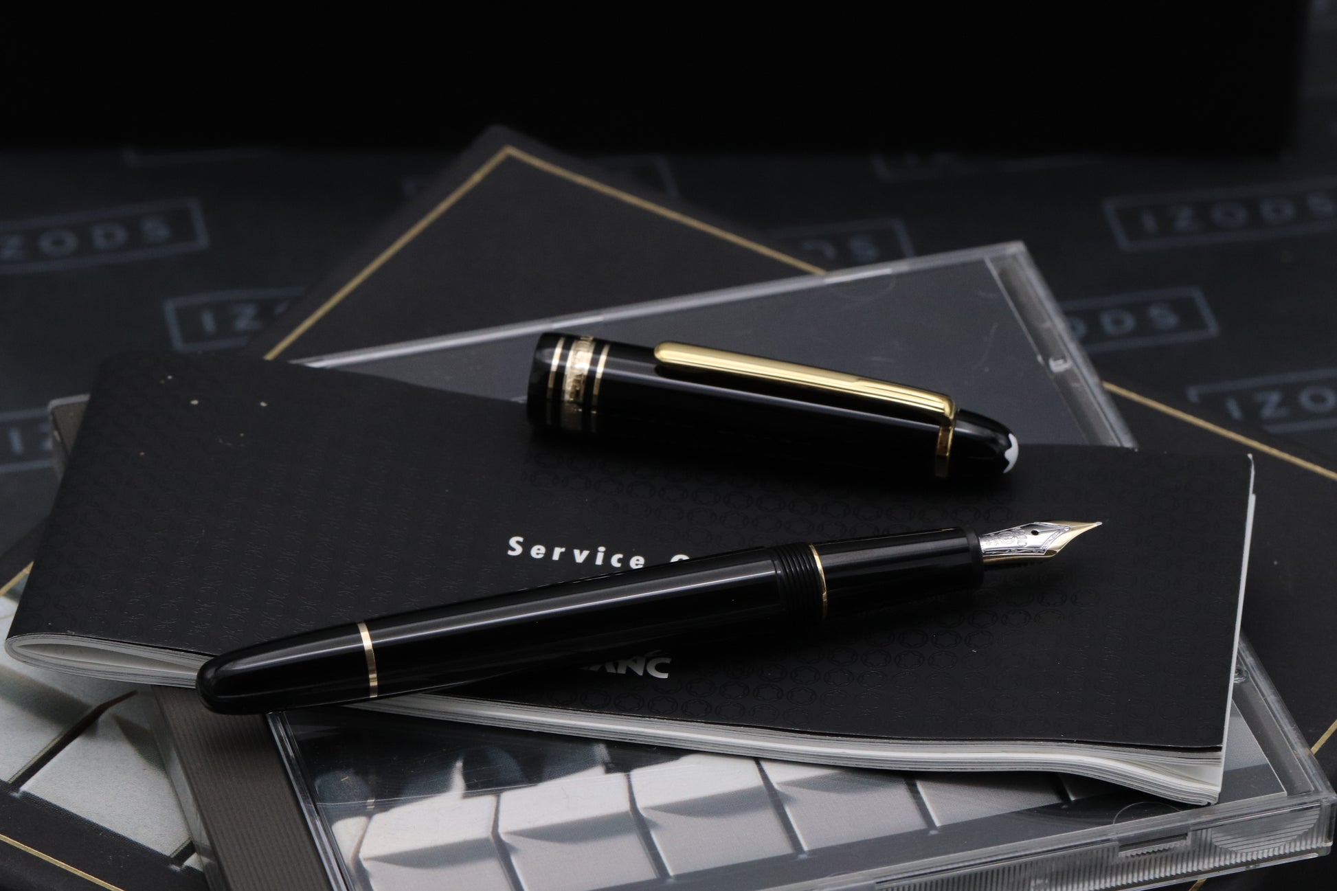 Thanks very much for looking at our listing for this Montblanc Meisterstuck 145 Chopin Gold Line Fountain Pen, which comes with its Montblanc presentation box, CD and stamped service guide. The pen has been lightly used and is presented in overall excellent condition - the edges of the presentation box do have some wear, which is common on this model.