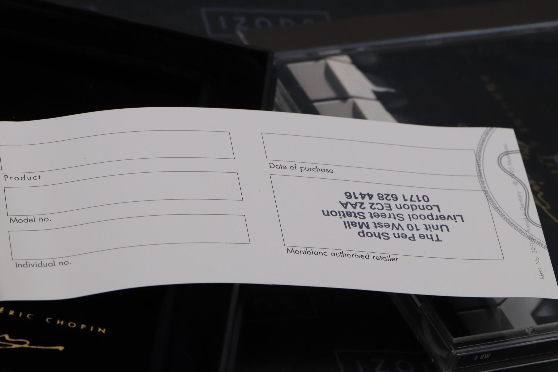With every pen that we sell we provide a card that includes the manufacturer, model, serial / limitation number and date it was purchased from us. We do this because our customers like to have documentation showing that it’s been purchased from a trusted seller