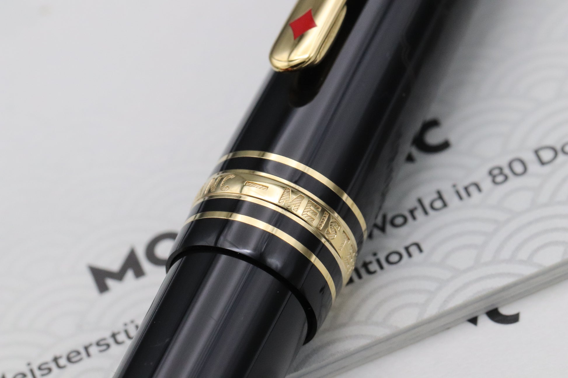 Thanks very much for looking at our listing for this Montblanc Meisterstück Classique Around The World in 80 Days Fountain Pen, which comes with its Montblanc presentation box (including outer) and stamped booklet - confirming first purchase on 15th August 2023. The pen has been carefully used and is presented in overall excellent condition.