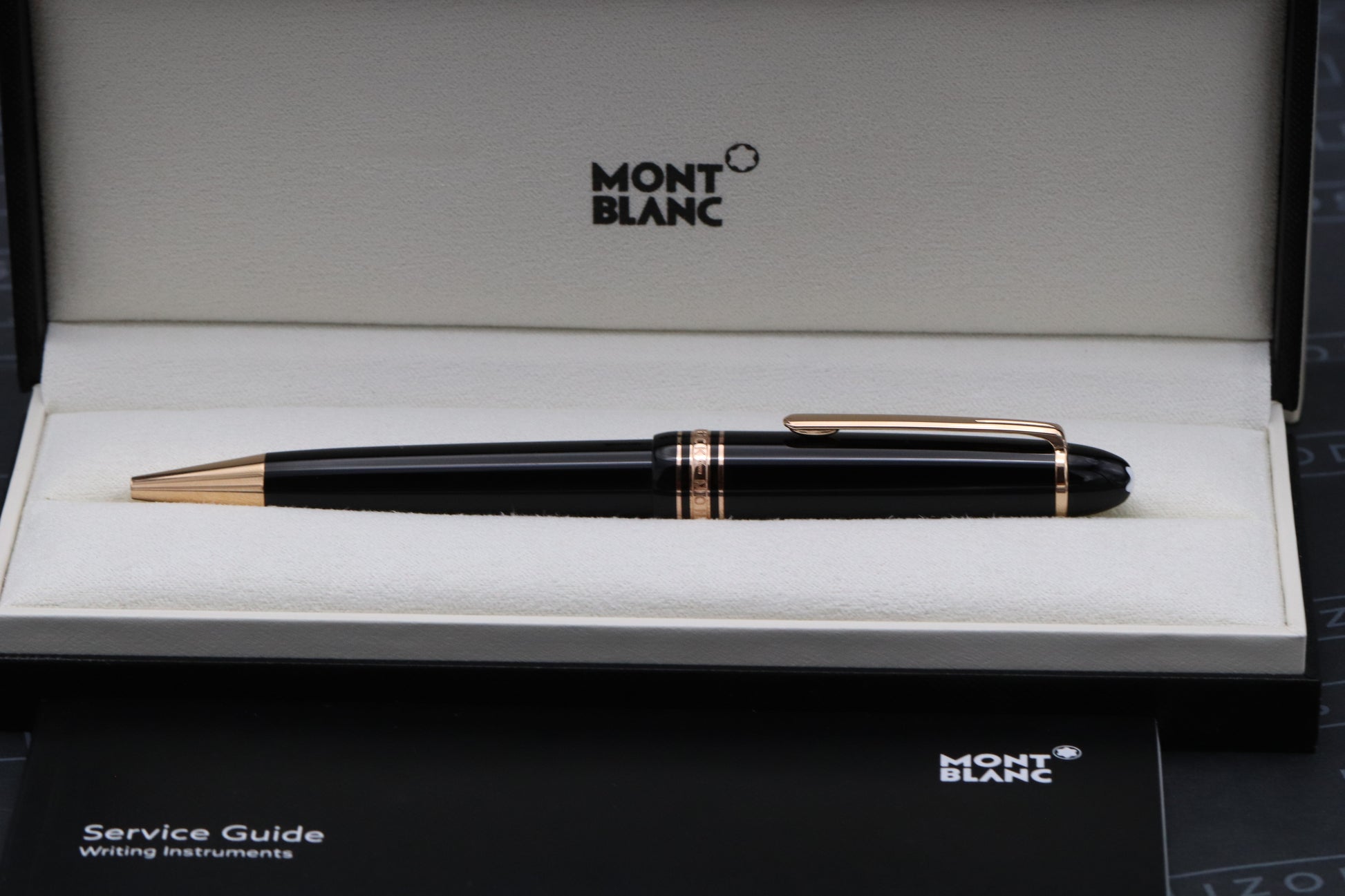 Thanks very much for looking at our listing for this Montblanc Meisterstück 161 LeGrand 90 Years Special Edition Ballpoint Pen, which comes with its Montblanc presentation box (including outer) and stamped service guide - confirming first purchase on 11th December 2015. The pen has never been used and is presented in essentially as new condition.