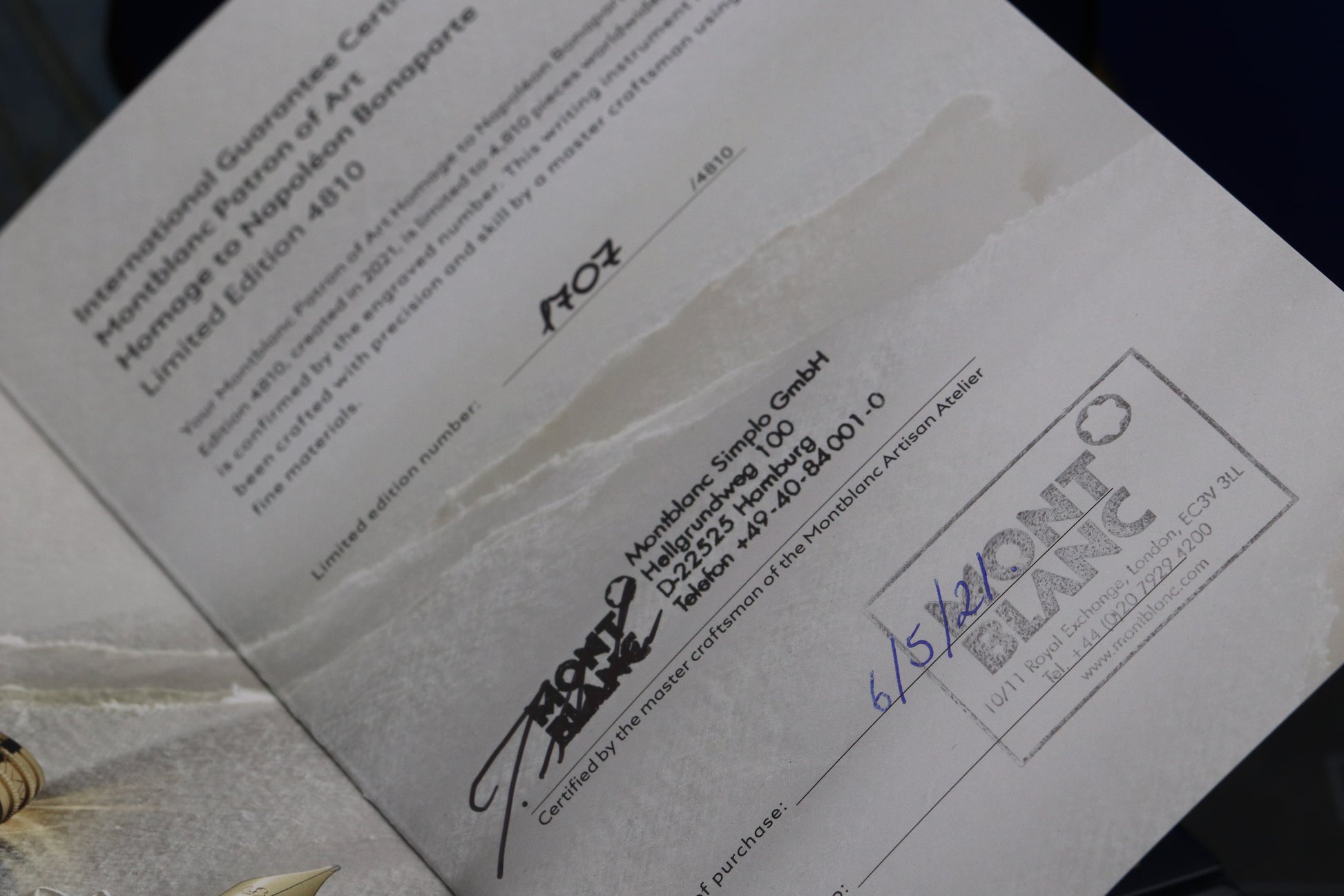 With every pen that we sell we provide a card that includes the manufacturer, model, serial / limitation number and date it was purchased from us. We do this because our customers like to have documentation showing that it’s been purchased from a trusted seller.