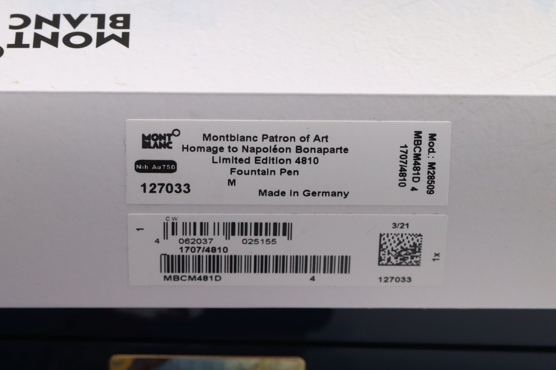 Thanks very much for looking at our listing for this Montblanc Patron of Art 4810 Homage to Napoleon Bonaparte Limited Edition Fountain Pen, which comes with its large Montblanc presentation box (including outer) and booklet. The pen has been carefully used and is presented in overall excellent condition (some very light marks on the section). As with other POA pens, only 4810 were produced and this is number 1707.