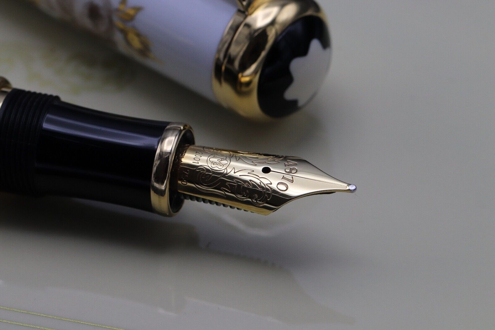 Thanks very much for looking at our listing for this Montblanc Patron of Art 4810 Marquis de Pompadour Limited Edition Fountain Pen, which comes with it’s presentation box - the M sticker, denoting a medium nib, remains on the cap. The pen has never been inked and is presented in overall fantastic condition. Only 4810 were produced and this is number 0258.
