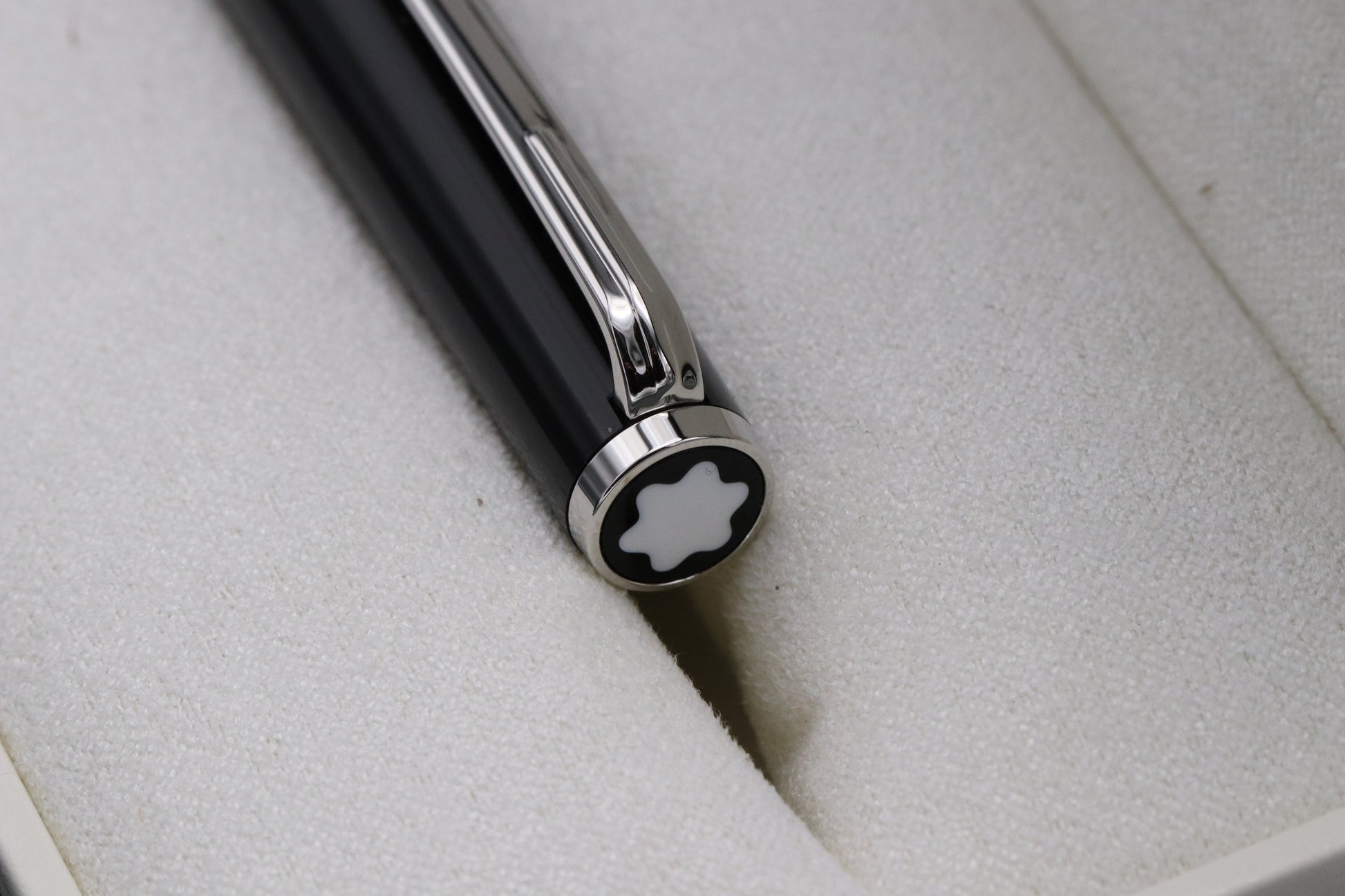 The pen is crafted from black precious resin with the trim being platinum-plated.