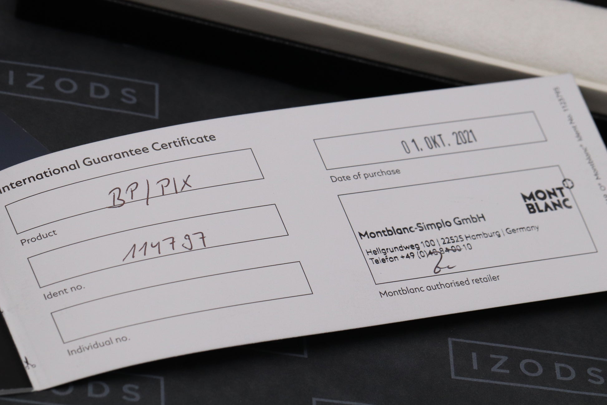 With every pen that we sell we provide a card that includes the manufacturer, model, serial / limitation number and date it was purchased from us. We do this because our customers like to have documentation showing that it’s been purchased from a trusted seller.