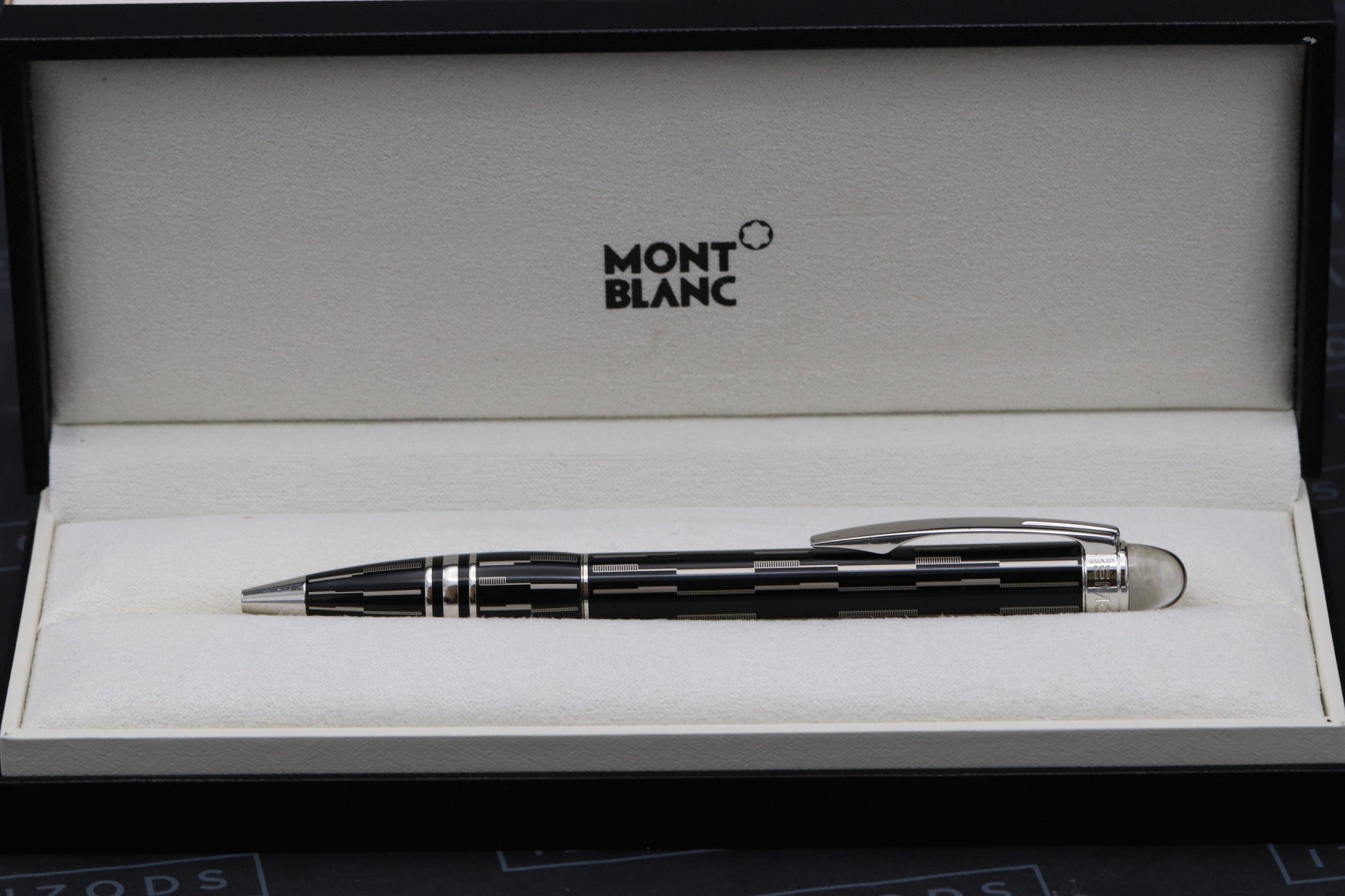 Thanks very much for looking at our listing for this Montblanc Starwalker Black Mystery Ballpoint Pen, which comes with its Montblanc presentation box (including outer). The pen has been regularly, but carefully used, and is presented in overall lovely condition.