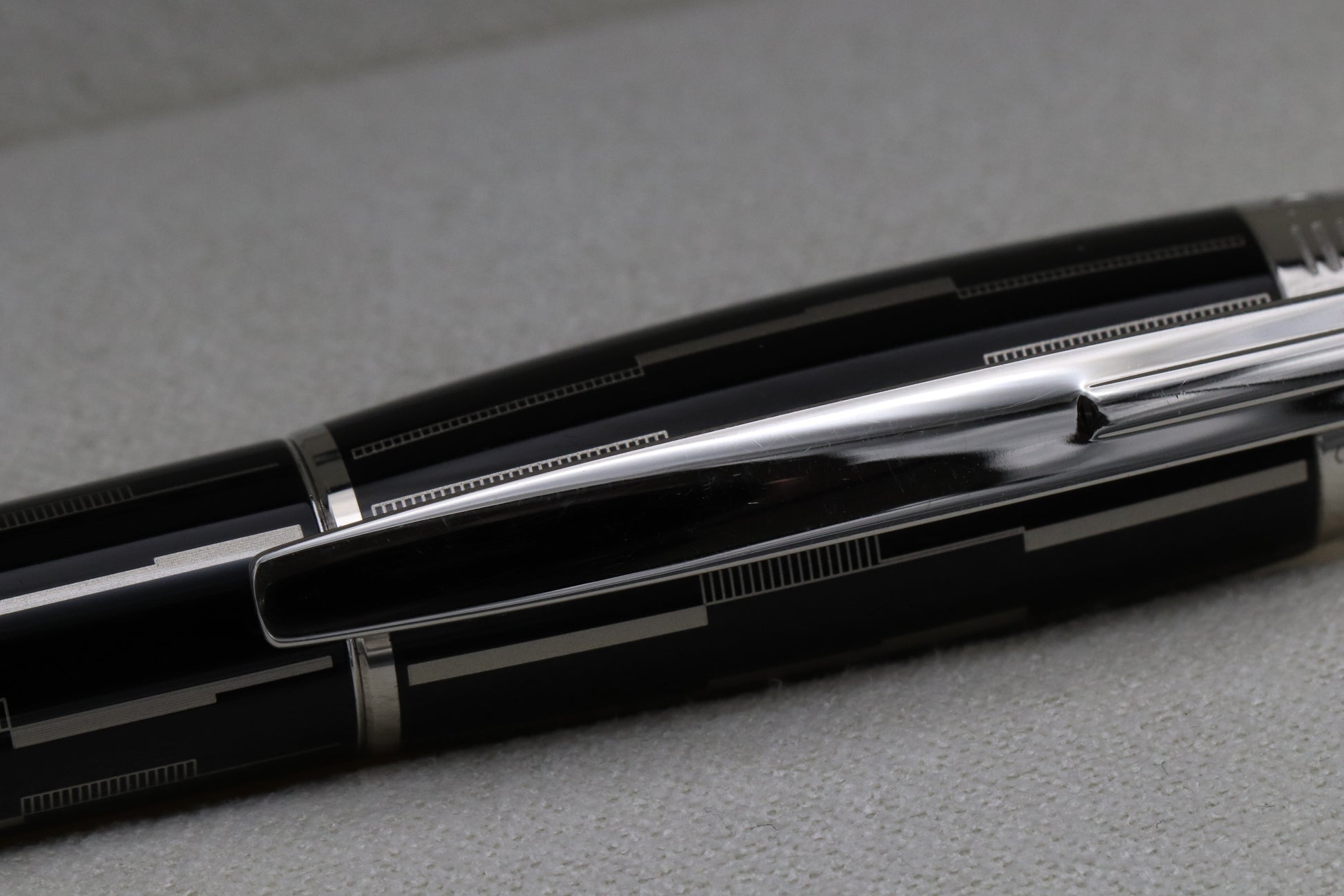 The Black Mystery features a black lacquered finish, which then has an eye-catching pattern laser engraved on to it. The platinum-plated clip and trim offer a great contrast.
