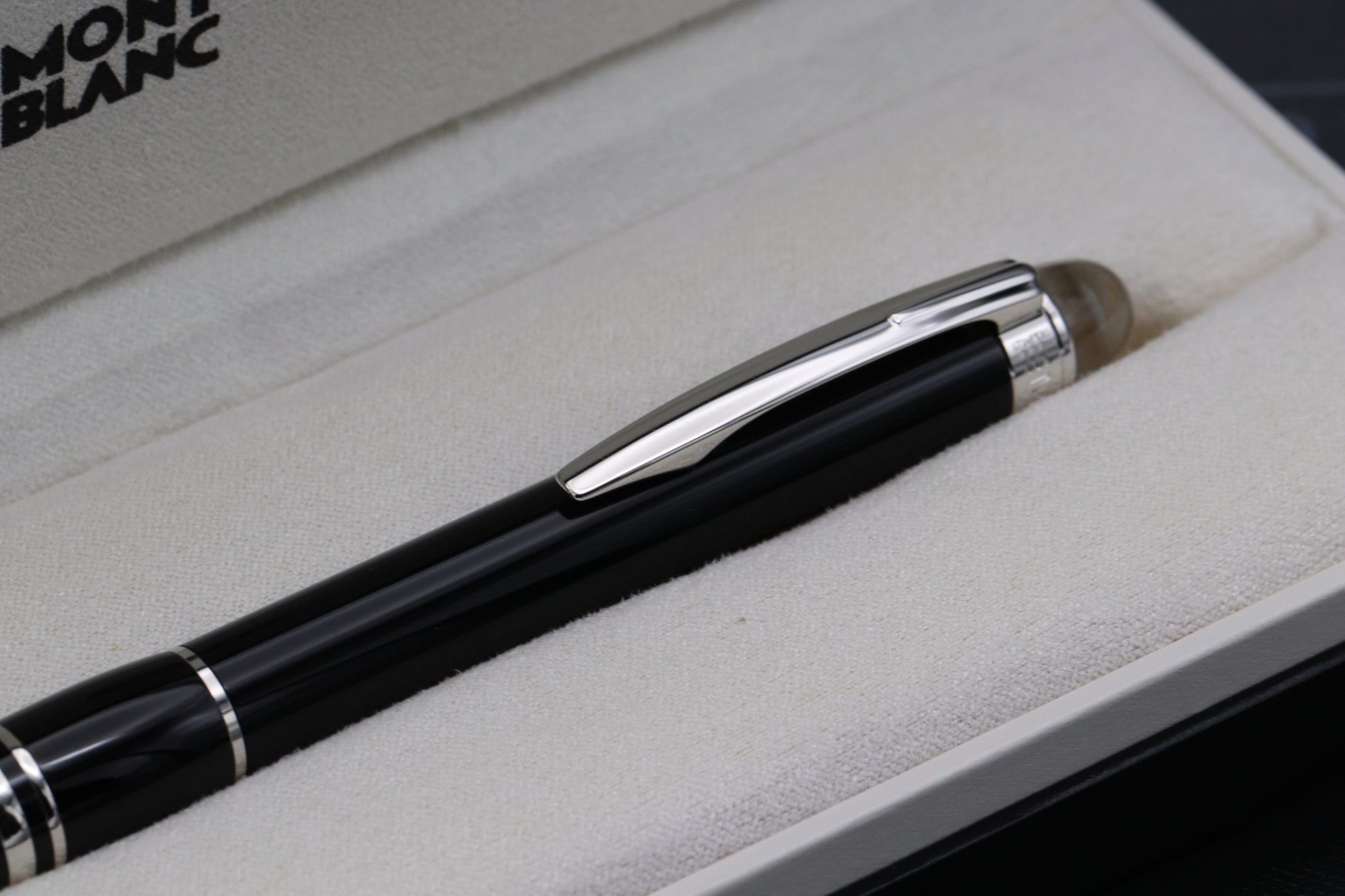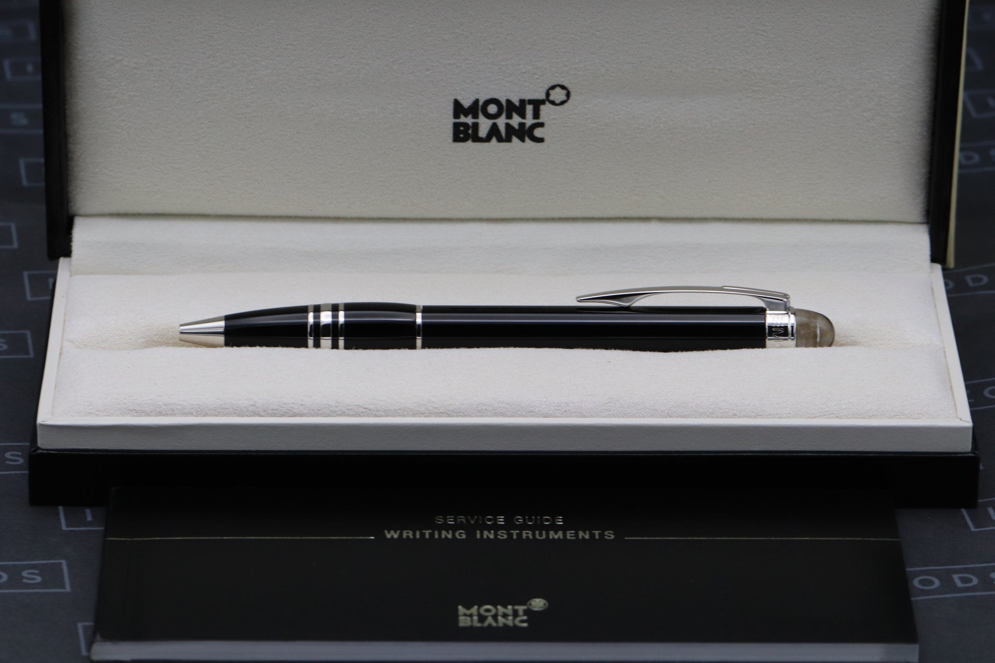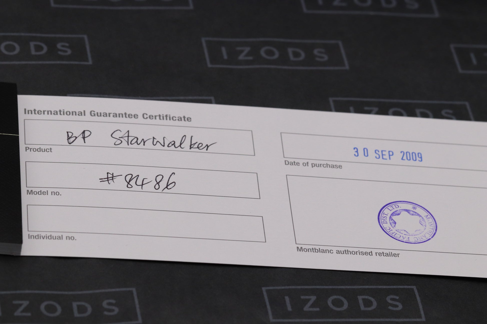 Thanks for looking at our listing for this Montblanc Starwalker Platinum Resin Ballpoint Pen, which comes with its Montblanc presentation box (including outer) and stamped service guide - confirming first purchase on 30th September 2009. The pen has never been used and is presented in essentially as new condition.