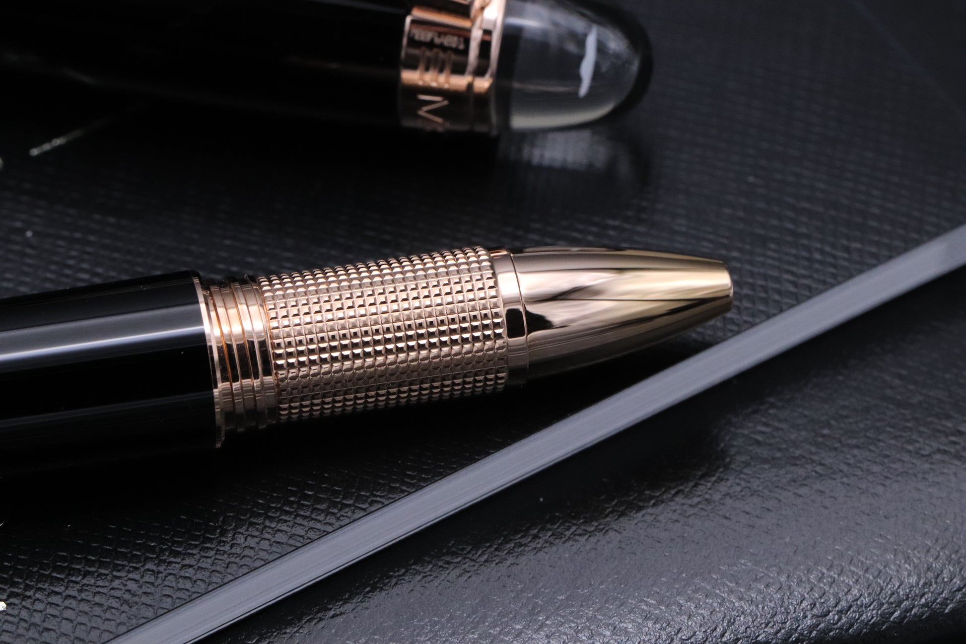 The usual markings are present with Montblanc on the clip ring as well as its unique serial number. The floating Montblanc emblem sits atop the pen.