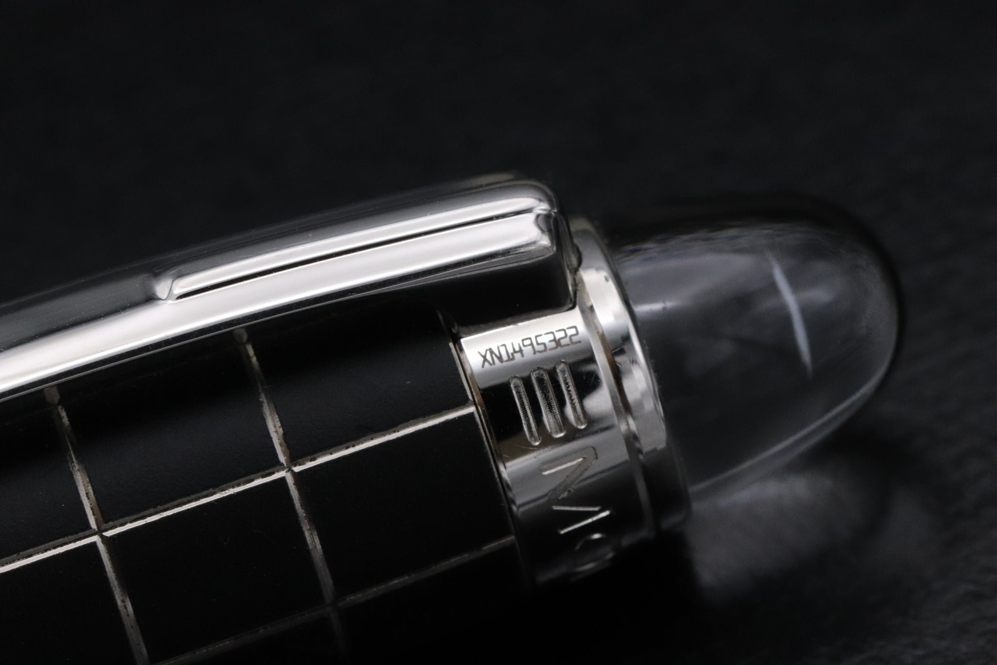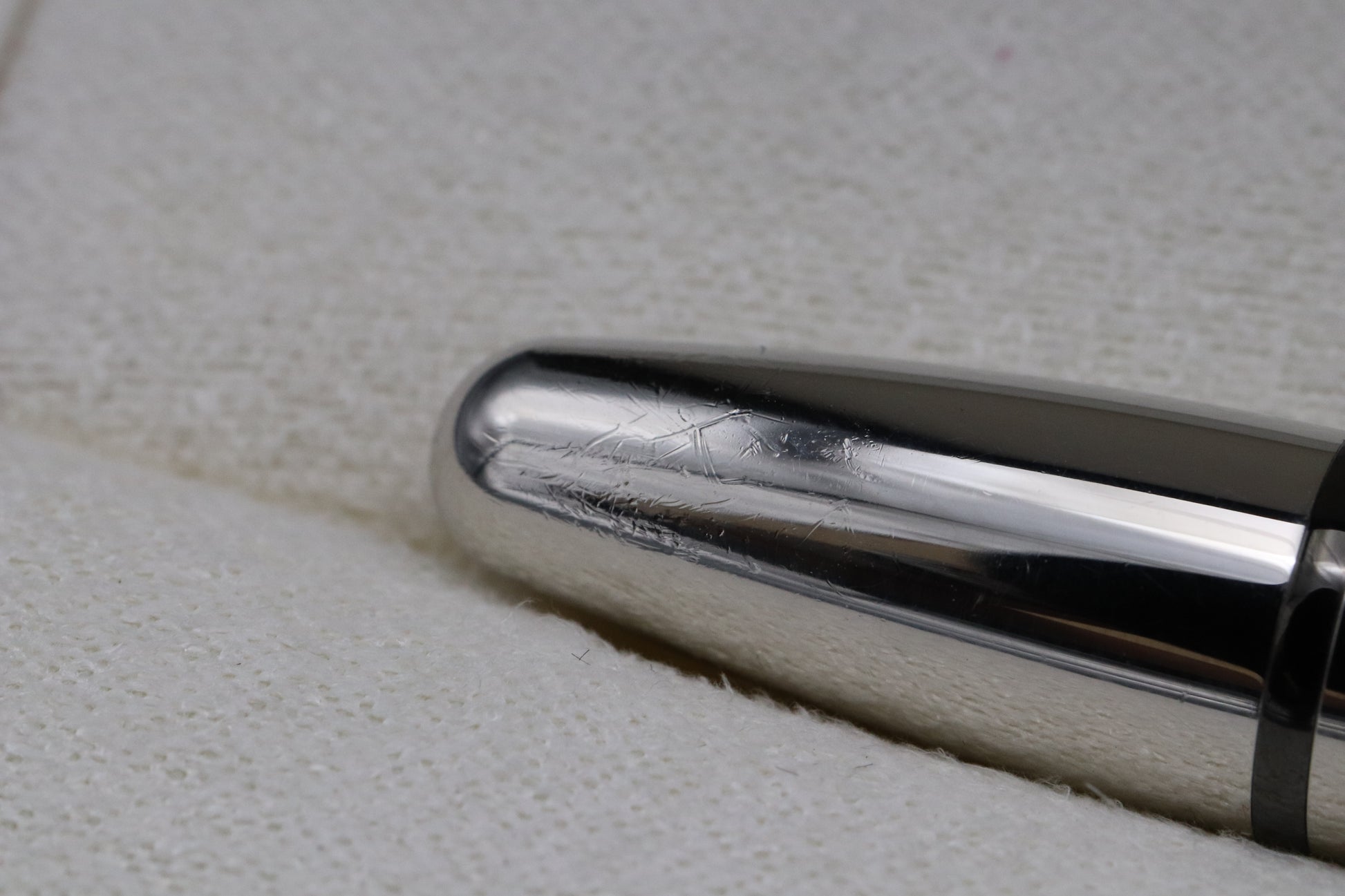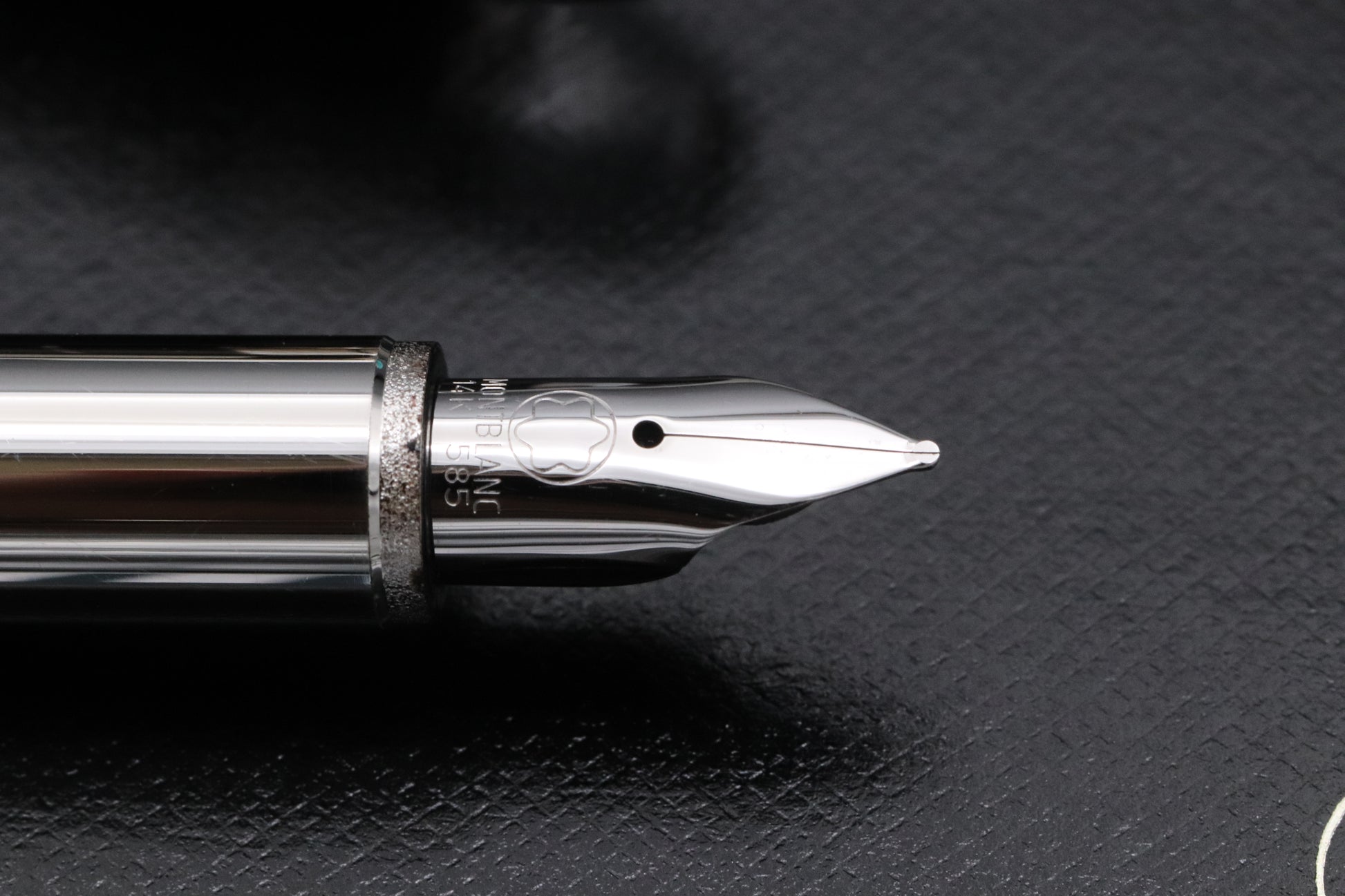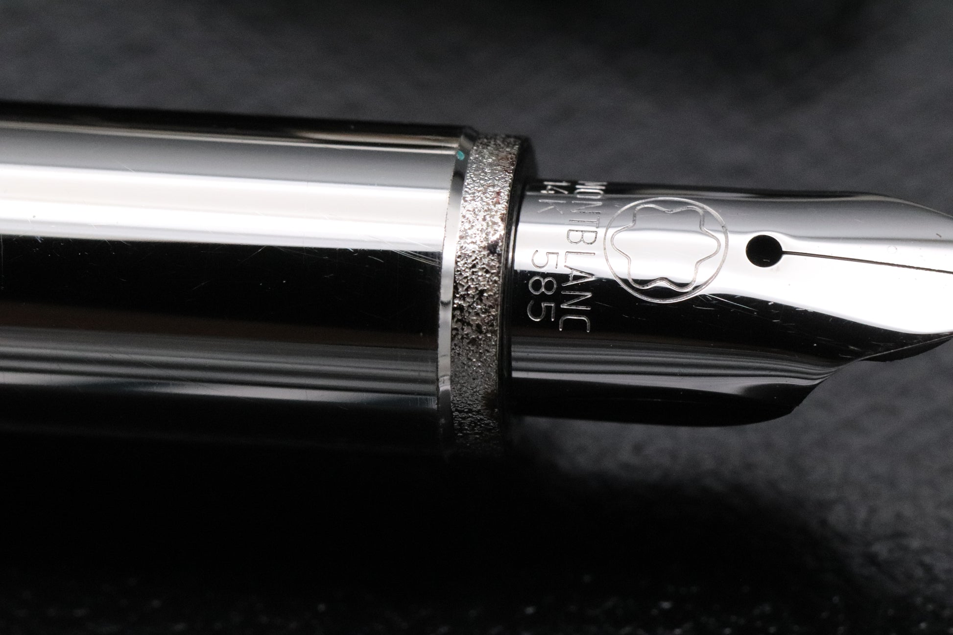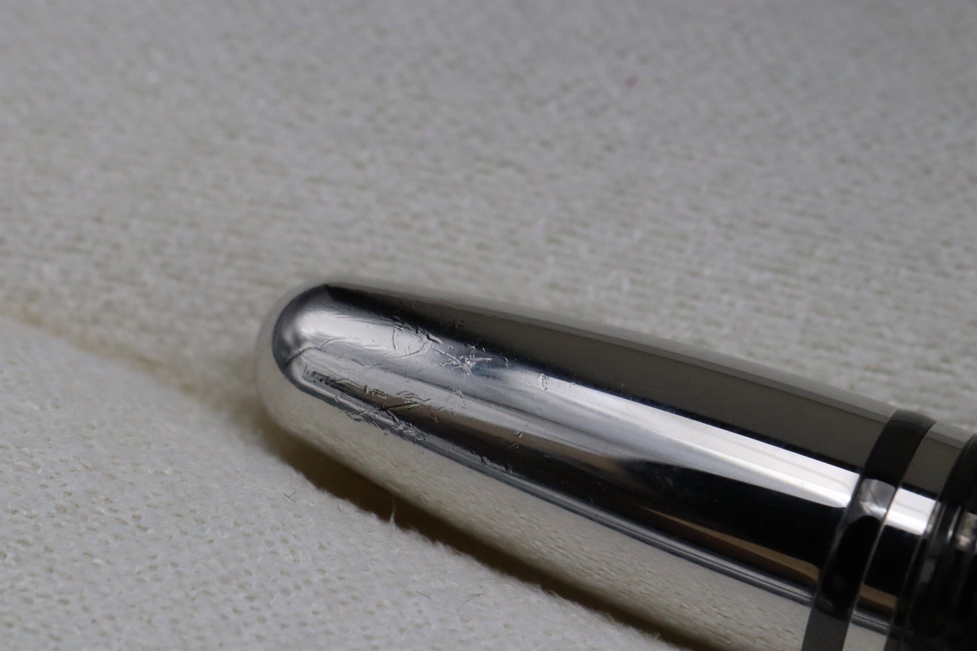 Thanks for looking at our listing for this Montblanc Starwalker Rubber Platinum Fountain Pen, which comes with its Montblanc presentation box (including outer). The pen is presented in overall lovely condition - there are some small marks to the platinum-plated cone (shown in the photos).