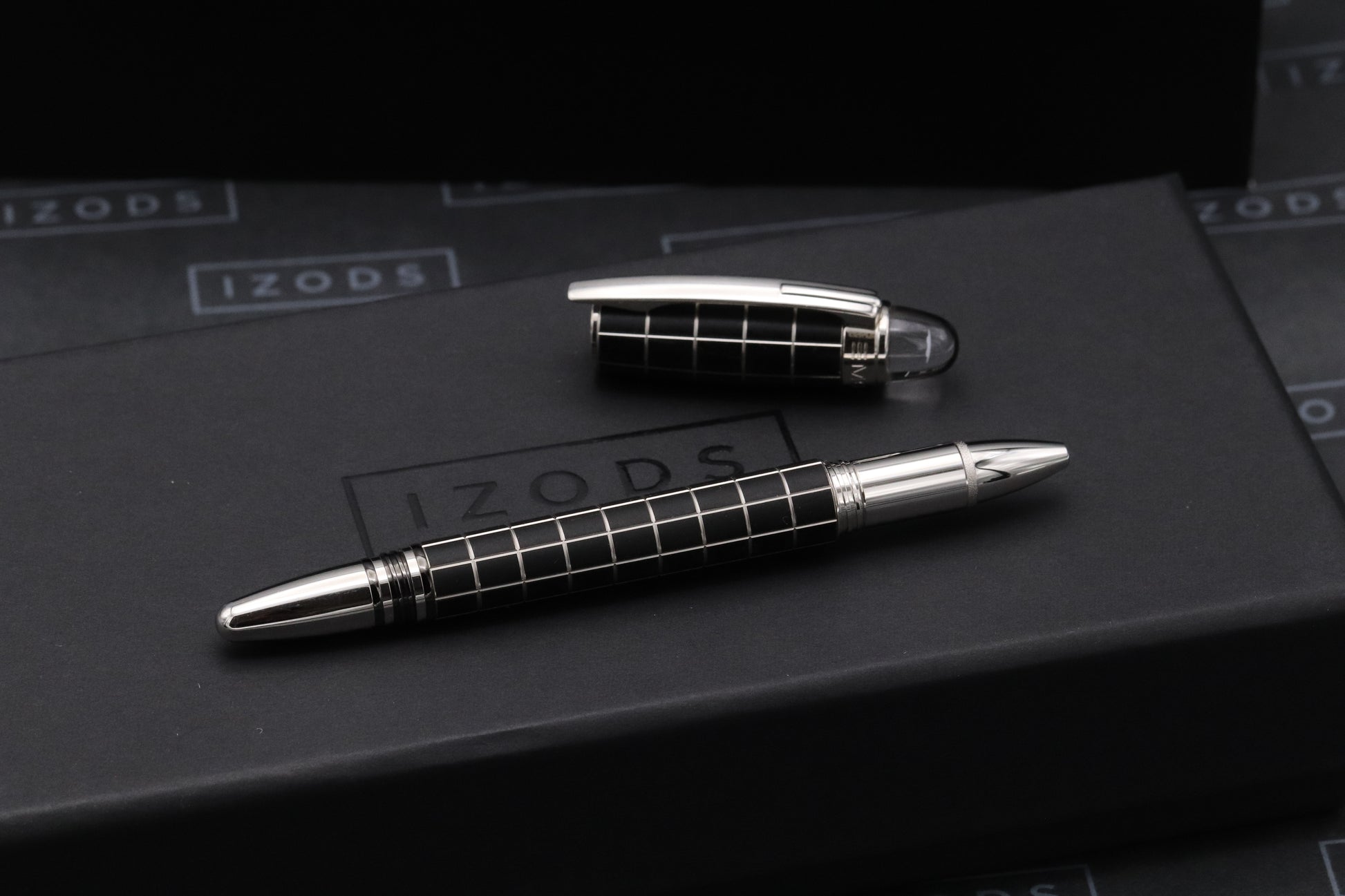 Thanks for looking at our listing for this Montblanc Starwalker Rubber Platinum Rollerball / Fineliner Pen, which comes with an IZODS presentation box. The pen has been regularly used, but is still presented in very good condition.