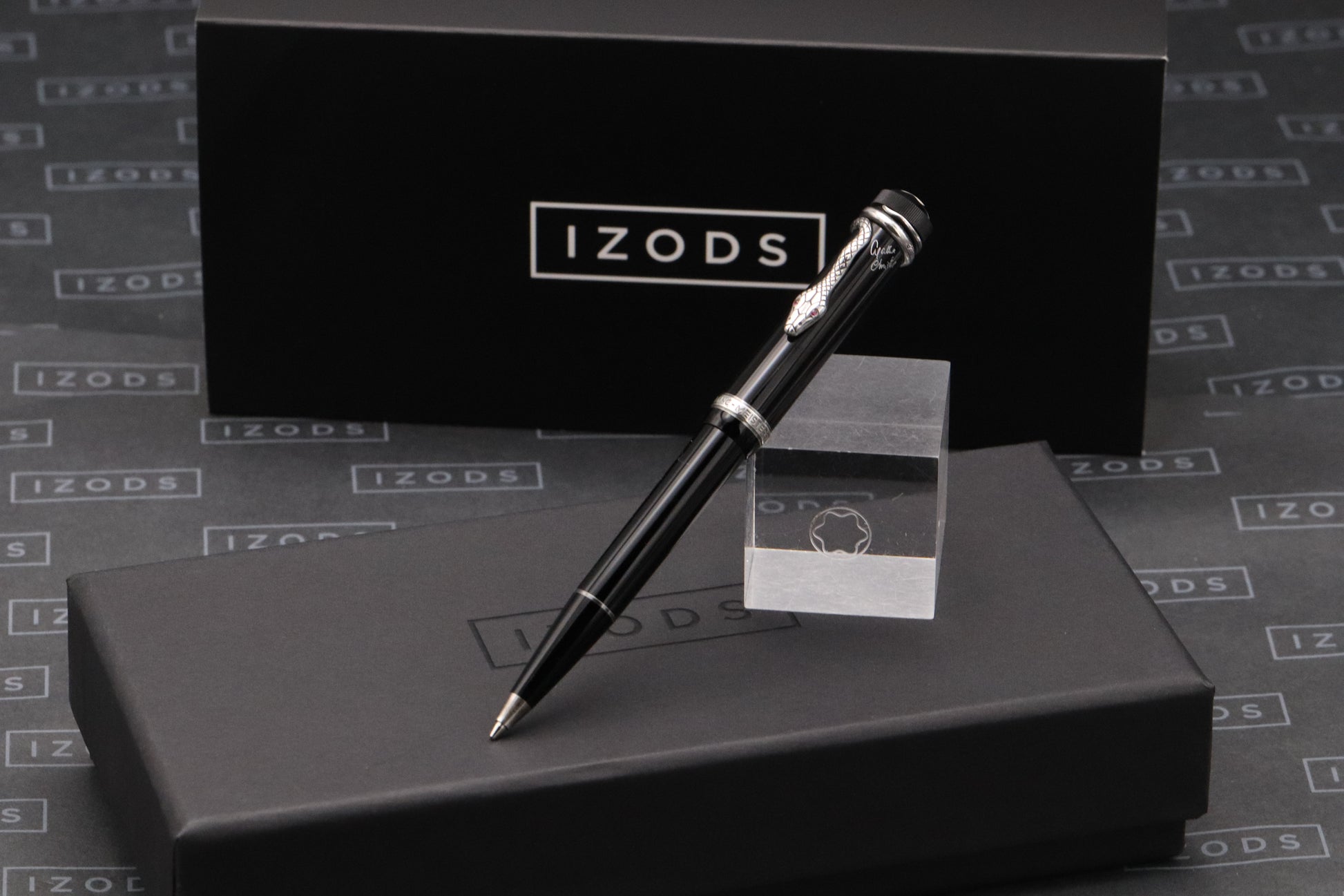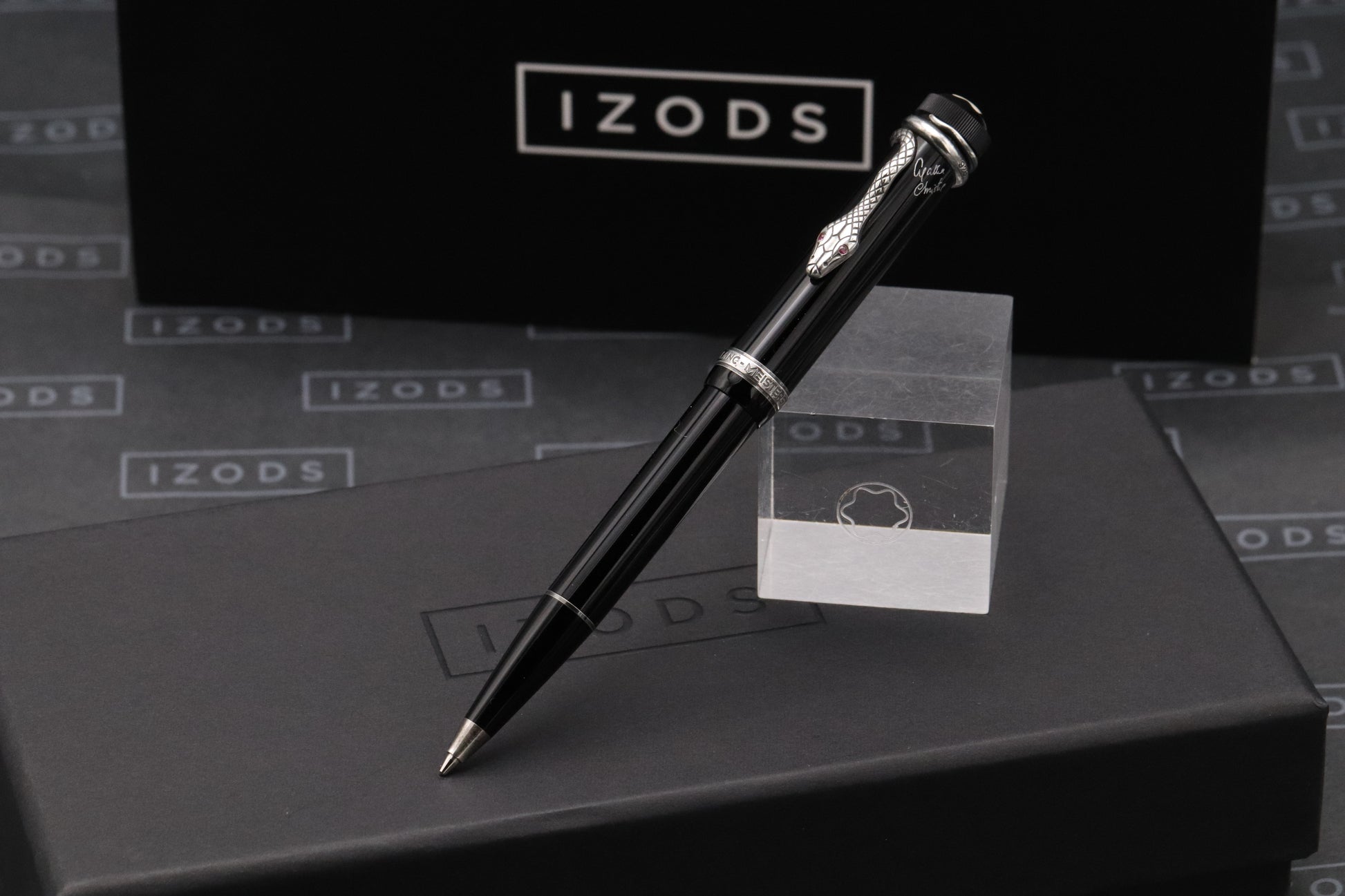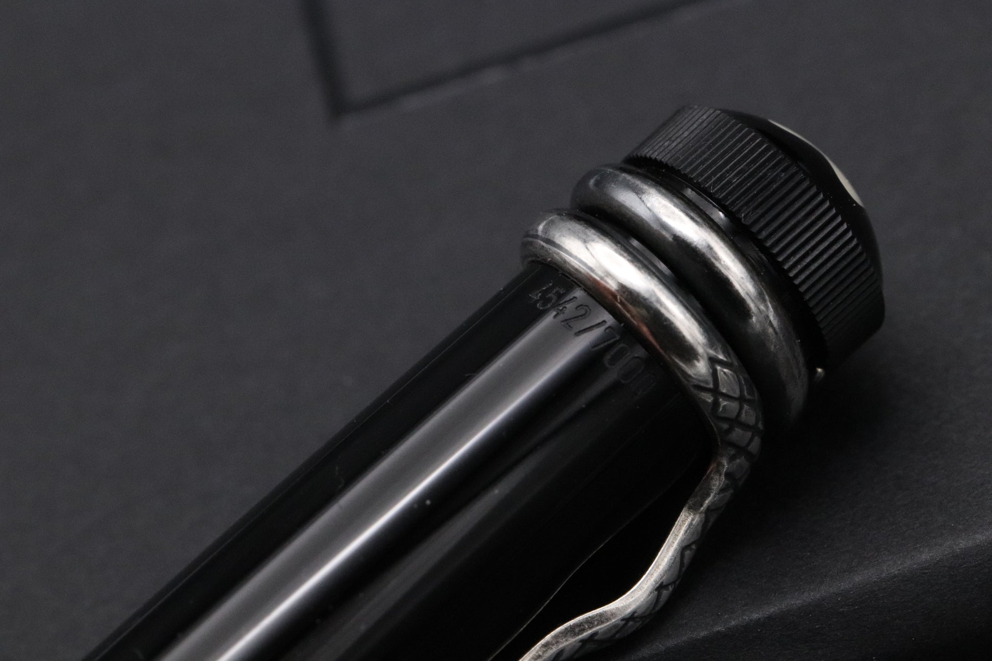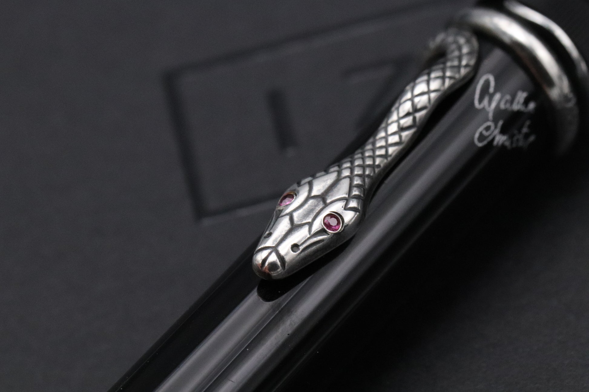 This is one of our favourite Writers Edition - the pencil is crafted from black resin, with the trim and serpent clip being sterling silver - the serpents eyes are set with two rubies.