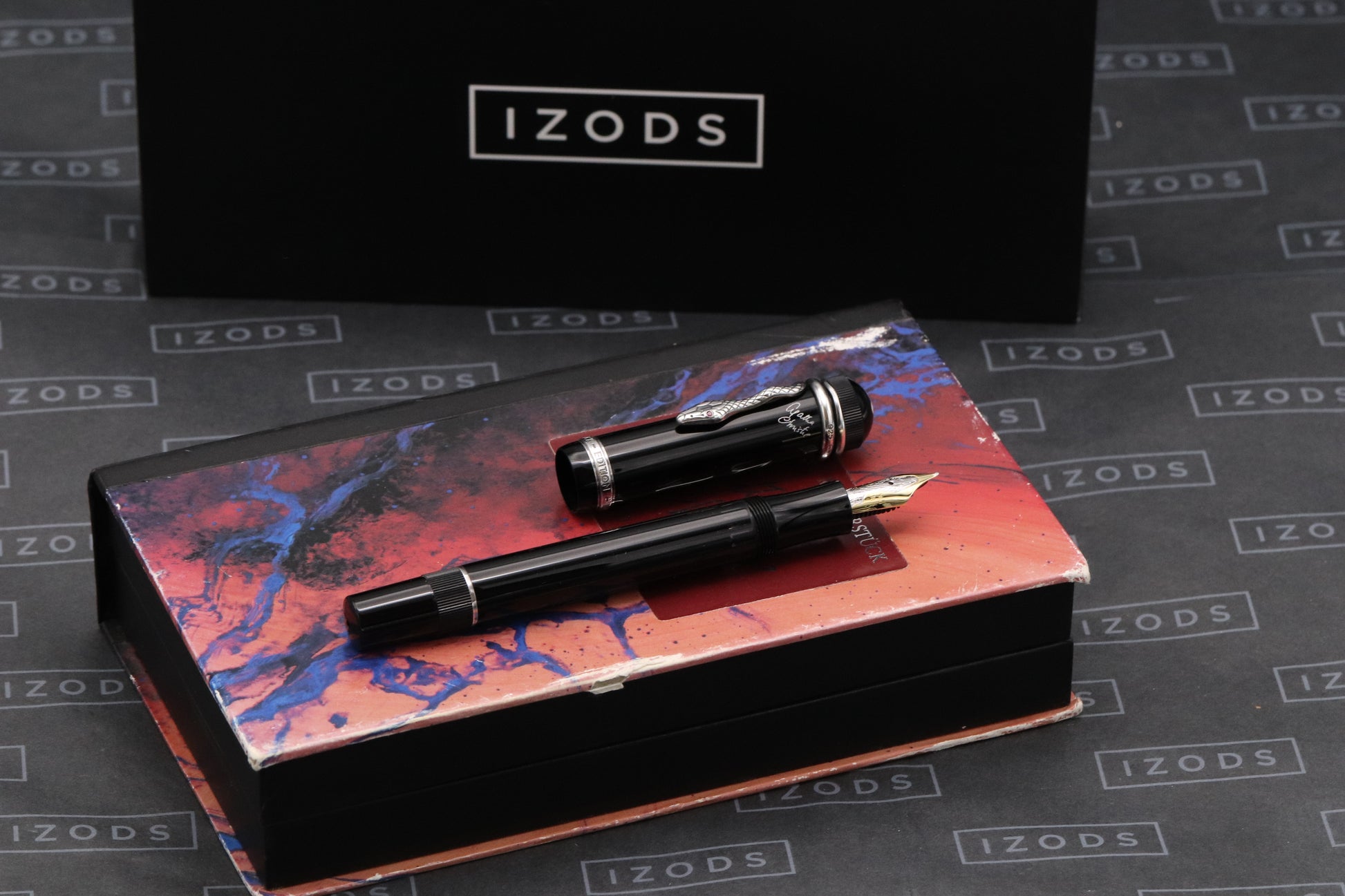 This is a legendary Writers Edition – the pen is crafted from black resin, with the trim and serpent clip being sterling silver – the serpents eyes are set with two rubies.