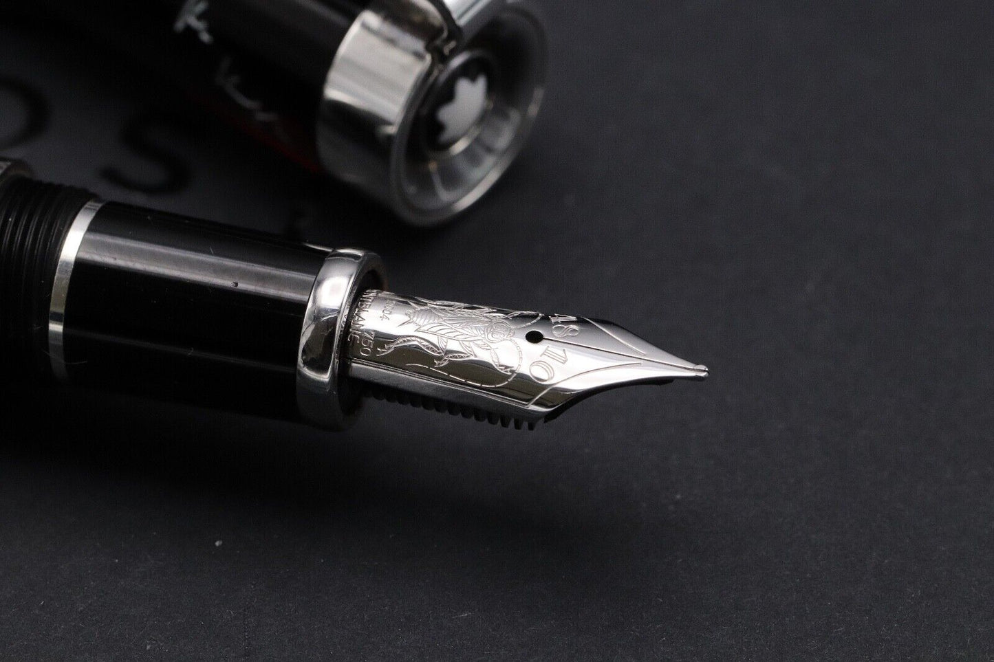 Thanks very much for looking at our listing for this Montblanc Writers Edition Franz Kafka Fountain Pen, which comes with an IZODS presentation box. The pen has been carefully used and is presented in overall excellent condition - the M sticker, denoting a medium nib, remains on the barrel. Only 18500 pens were produced and this is number 01455.