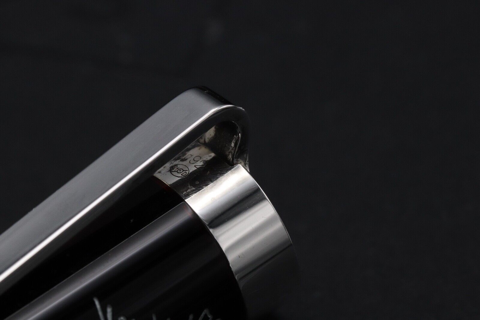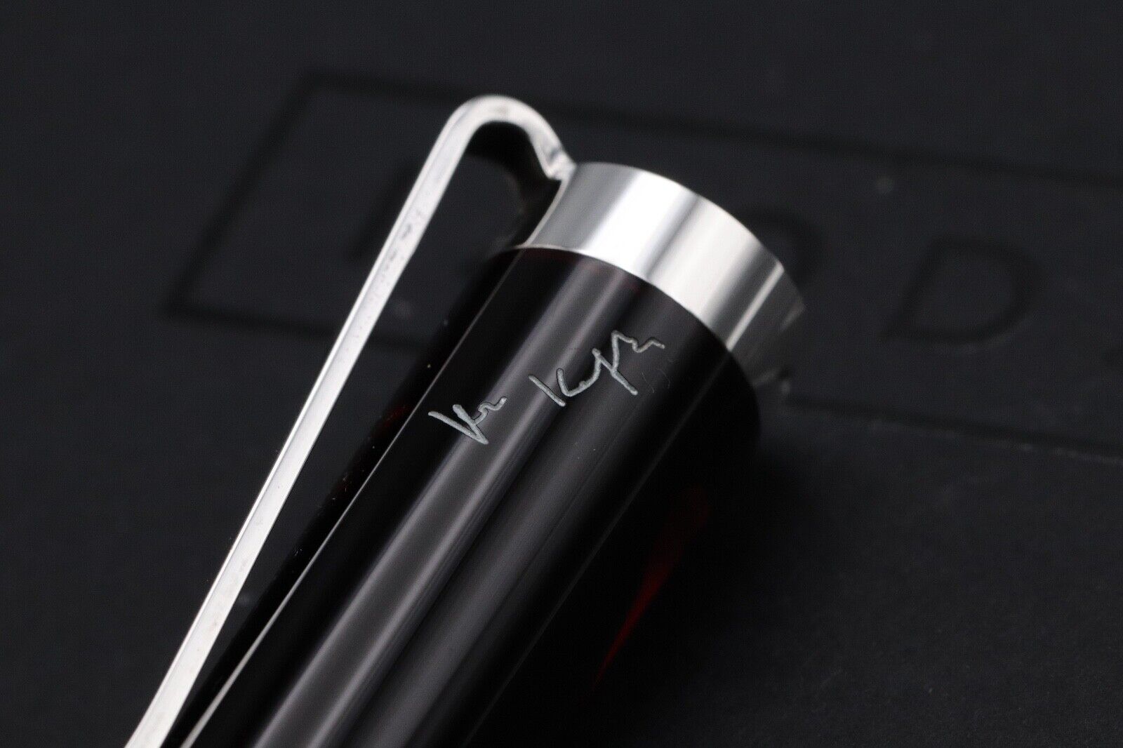 The barrel and cap are crafted from a semi-transparent dark red resin, with the trim being sterling silver. The design is inspired by his most famous work "The Metamorphosis", with the the tapered barrel making this one of the most interesting designs from the series.