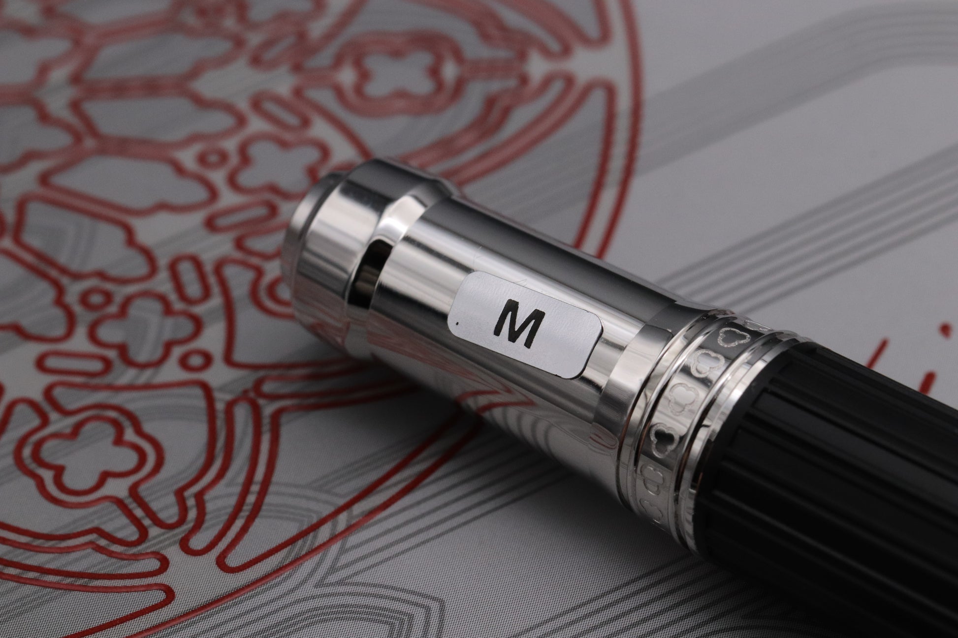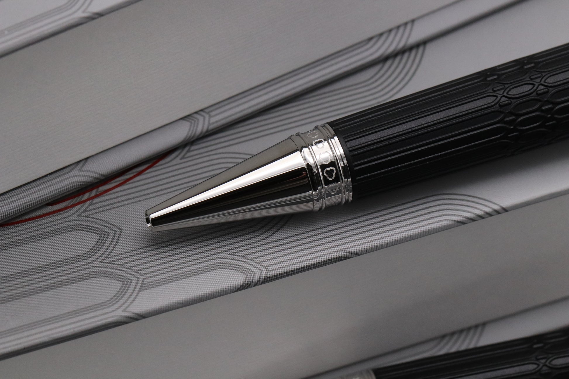 The design of the pen is inspired by Notre-Dame, with the cap being decorated with gothic arches and the end of the clip is shaped like the clapper in a bell – recalling Quasimodo and the bells of Notre-Dame. Victor Hugo’s signature is engraved on the cap.