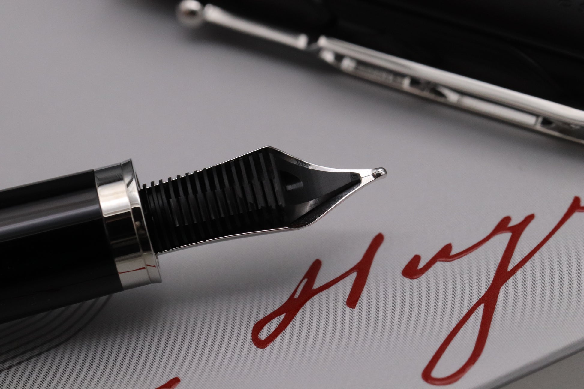 The fountain pen is fitted with an 18k medium nib and it's a piston filler, so your choice here is bottled ink. The ballpoint will come with a new refill and the pencil has 0.7mm leads.