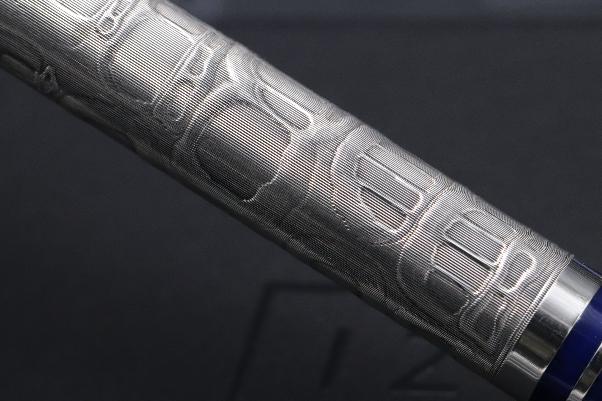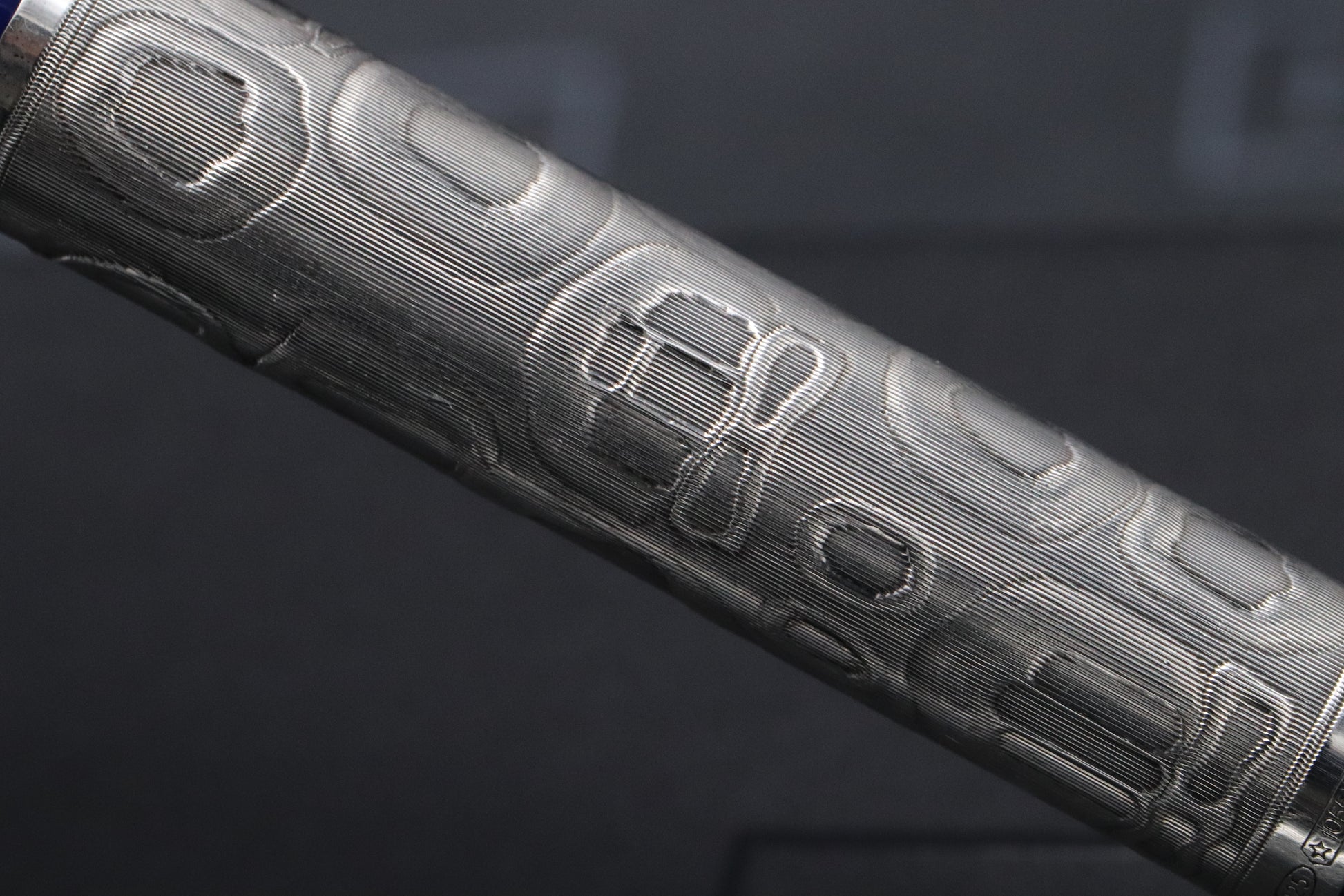 Released in 1998 and part of the Cosmopolitan series, this is the Art Nouveau. The pen is crafted from sterling silver and the barrel and cap engravings are inspired by Gaudi's Casa Mila in Barcelona. The other elements of the pen have a deep blue resin finish.