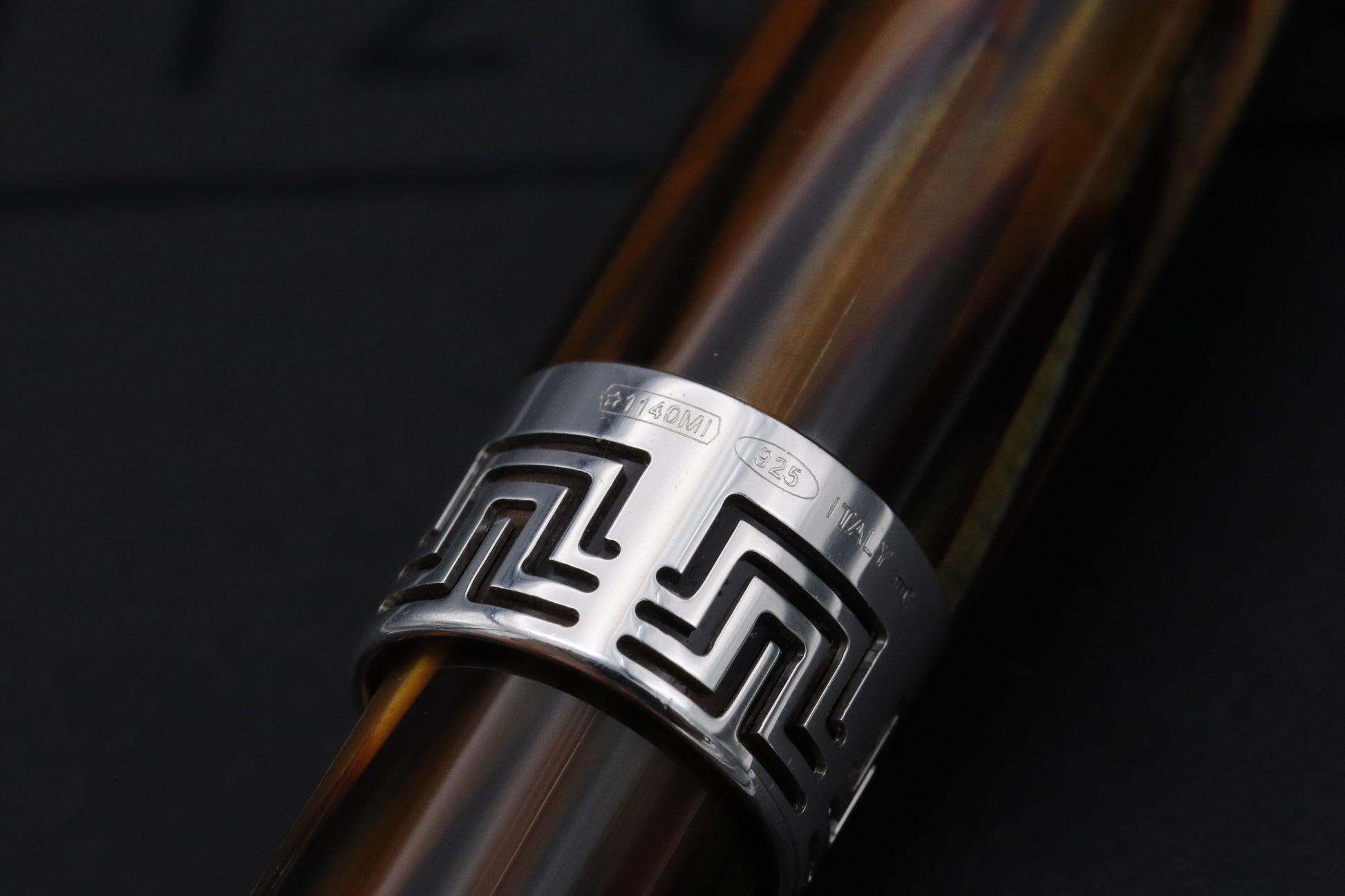 Thanks very much for looking at our listing for this wonderful Montegrappa Extra 1930 Turtle Brown Celluloid Fountain Pen, which comes with an IZODS presentation box. The pen has just returned from a full overhaul by Montegrappa in Italy, where the piston mechanism was replaced, the sterling silver was polished and the pen was fully serviced. It's presented in fantastic condition.