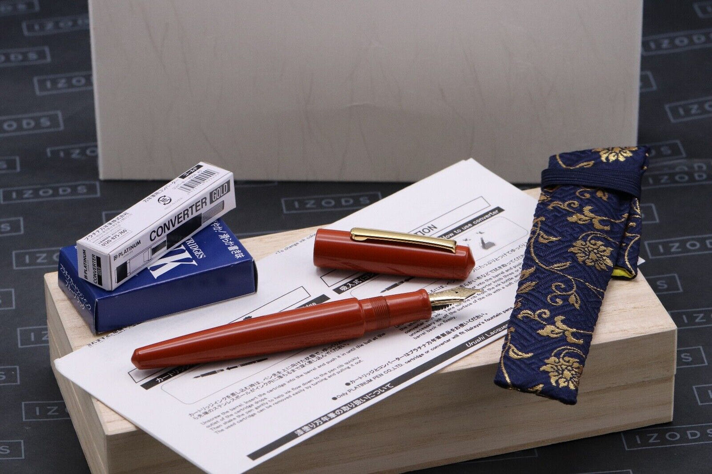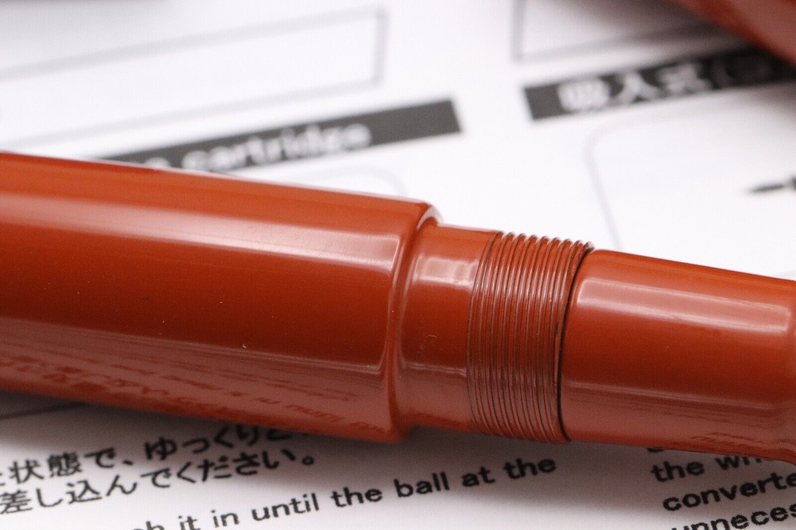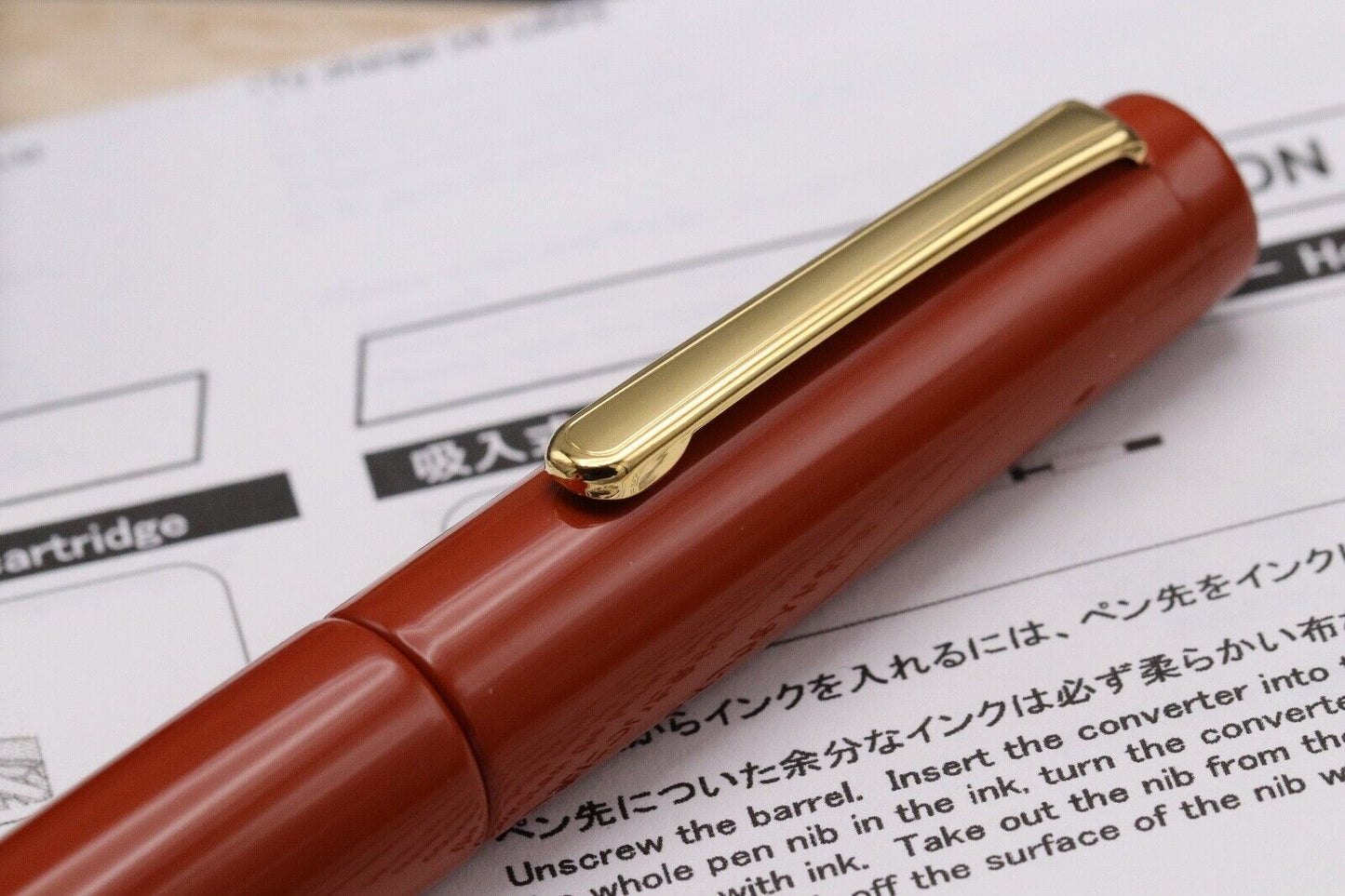 Nakaya require no introduction and if you’ve got this far then likely you’ll be familiar with their wonderful writing instruments. This is the rarer Araishu finish, which has a deep vibrant orange tone to it. The trim is gold-plated.