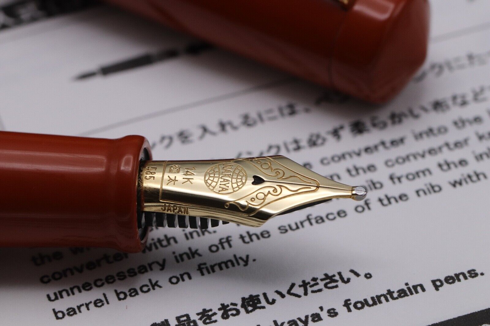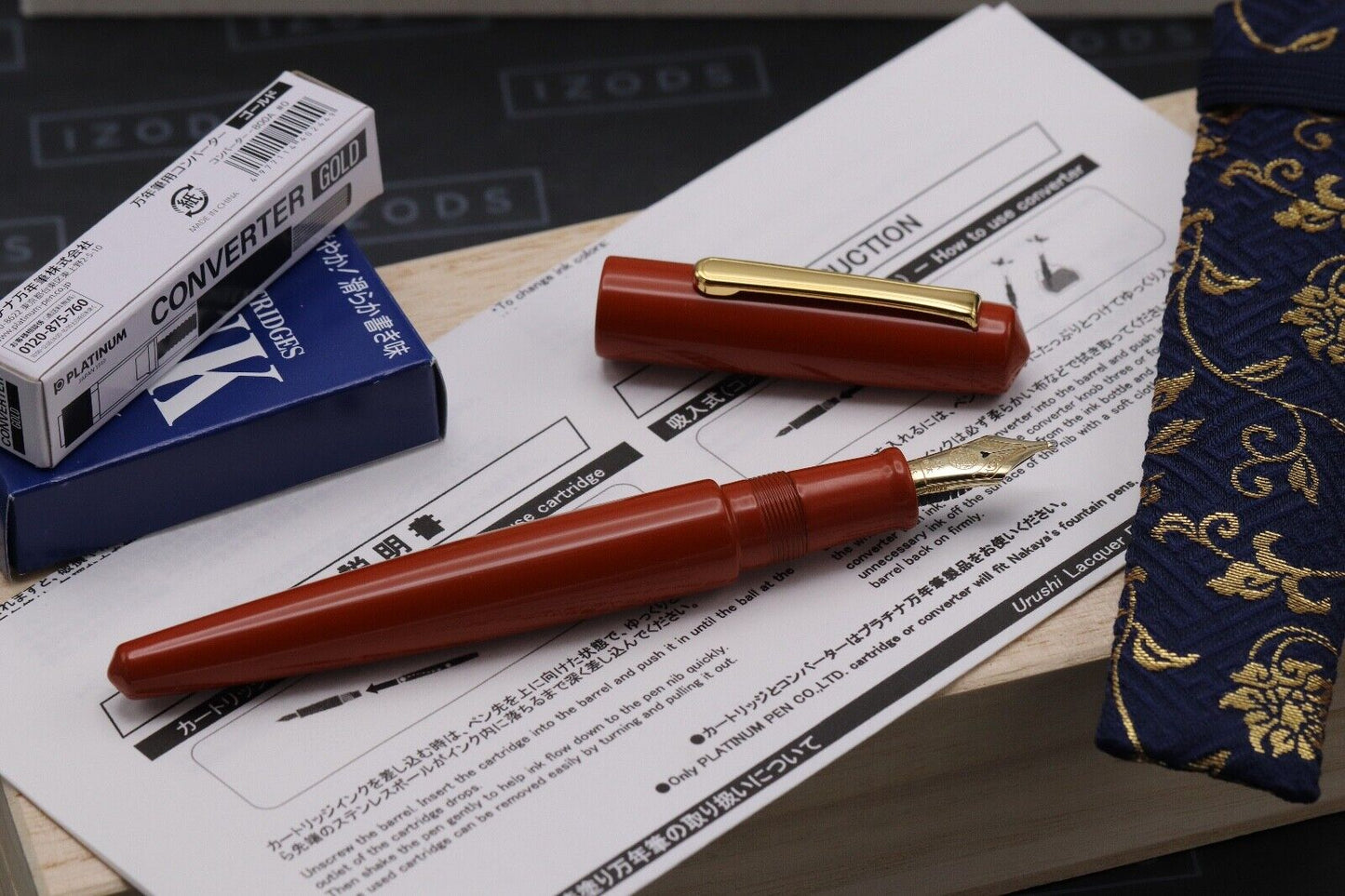 The pen is hand-turned from solid ebonite rod stock, which then has multiple layers of lacquer applied, before finally being finished with natural urushi resin. The Naka-ai has such a lovely curved shape and really shows off the colour perfectly.